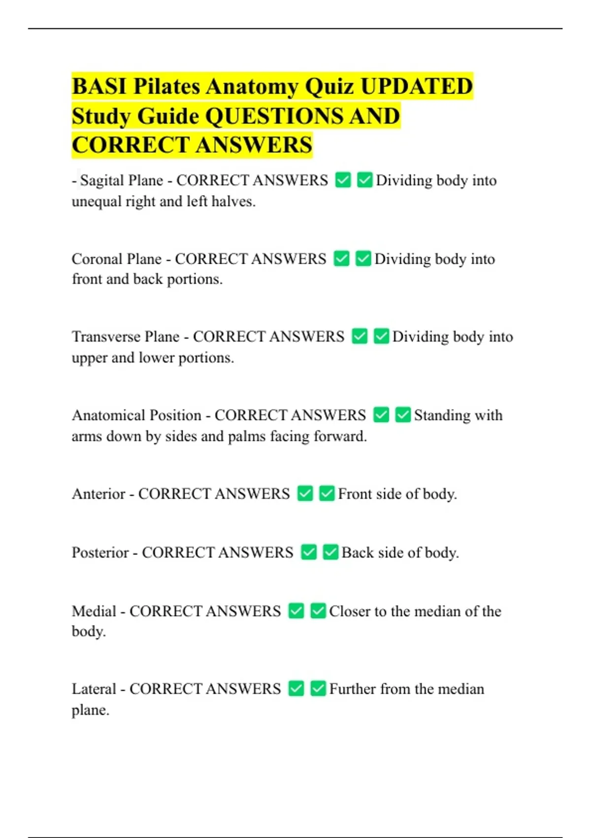 BASI Pilates Anatomy Quiz UPDATED Study Guide QUESTIONS AND CORRECT ANSWERS