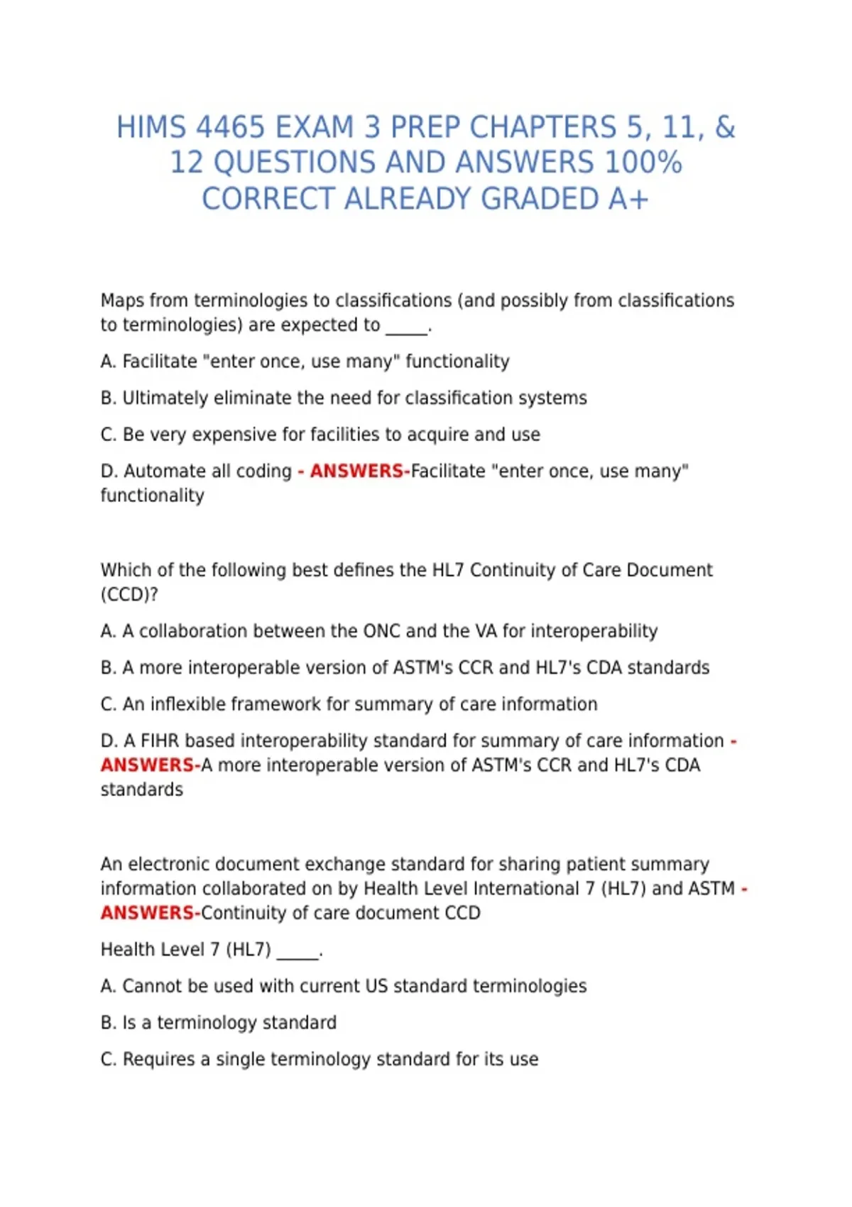 ANSWERS-Continuity of care document CCD