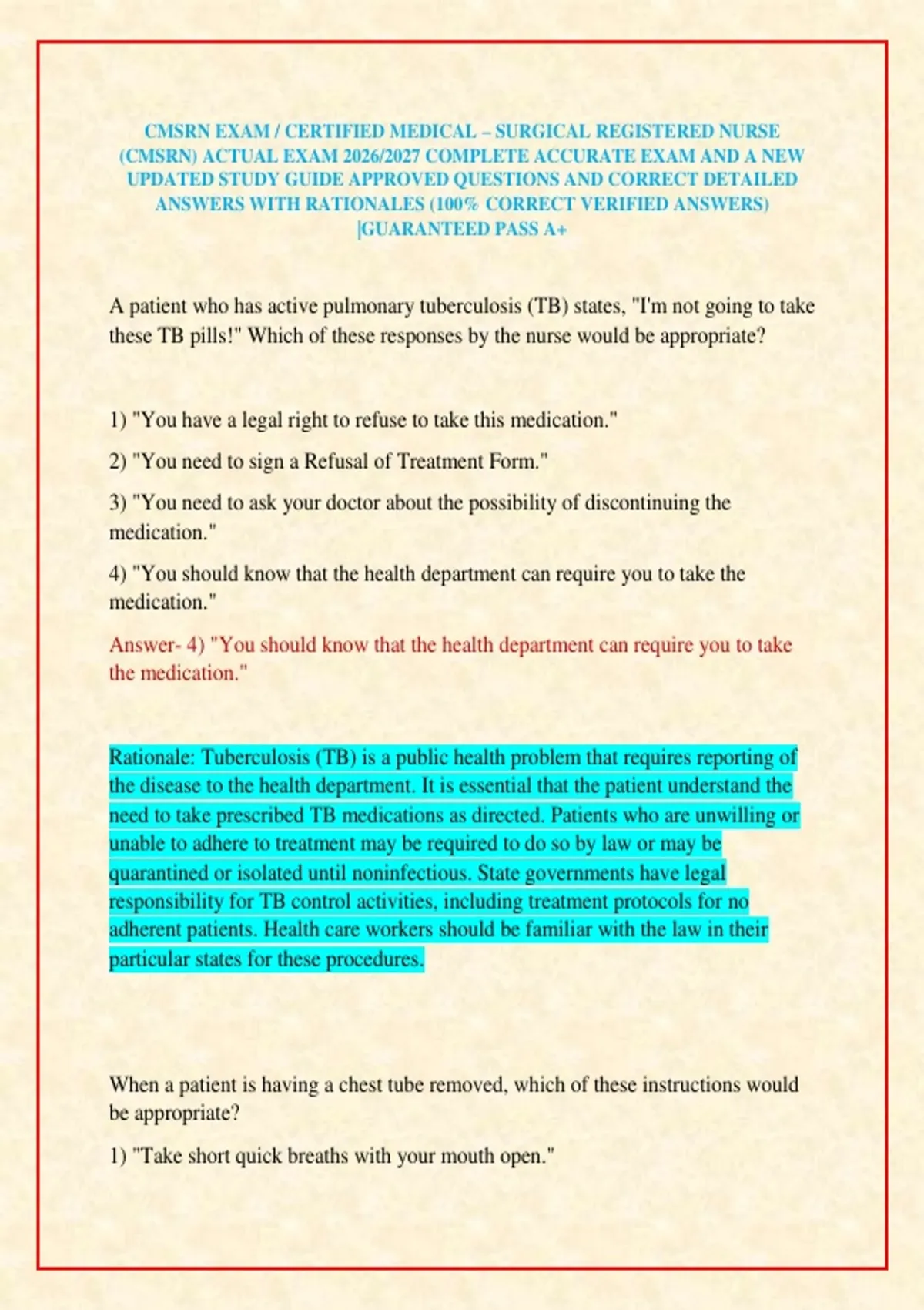 (CMSRN) ACTUAL EXAM 2026/2027 COMPLETE ACCURATE EXAM AND A NEW