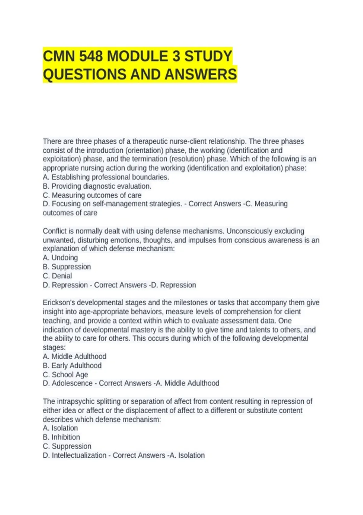 CMN 548 MODULE 3 STUDY QUESTIONS AND ANSWERS