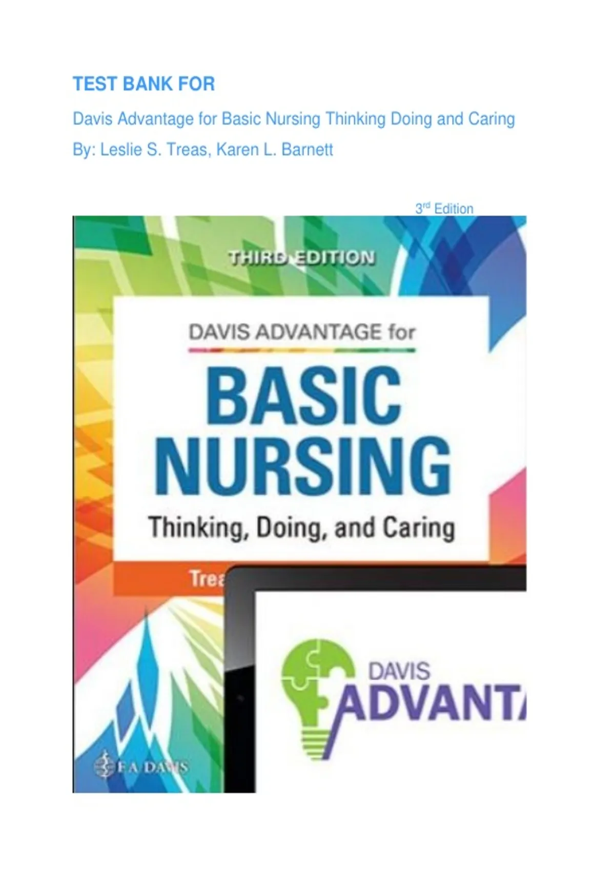 Test Bank For Davis Advantage for Basic Nursing Thinking, Doing, and Caring Thinking, Doing, and Caring 3rd Edition By: Leslie S. Treas, Karen L. Barnett| Latest 2026