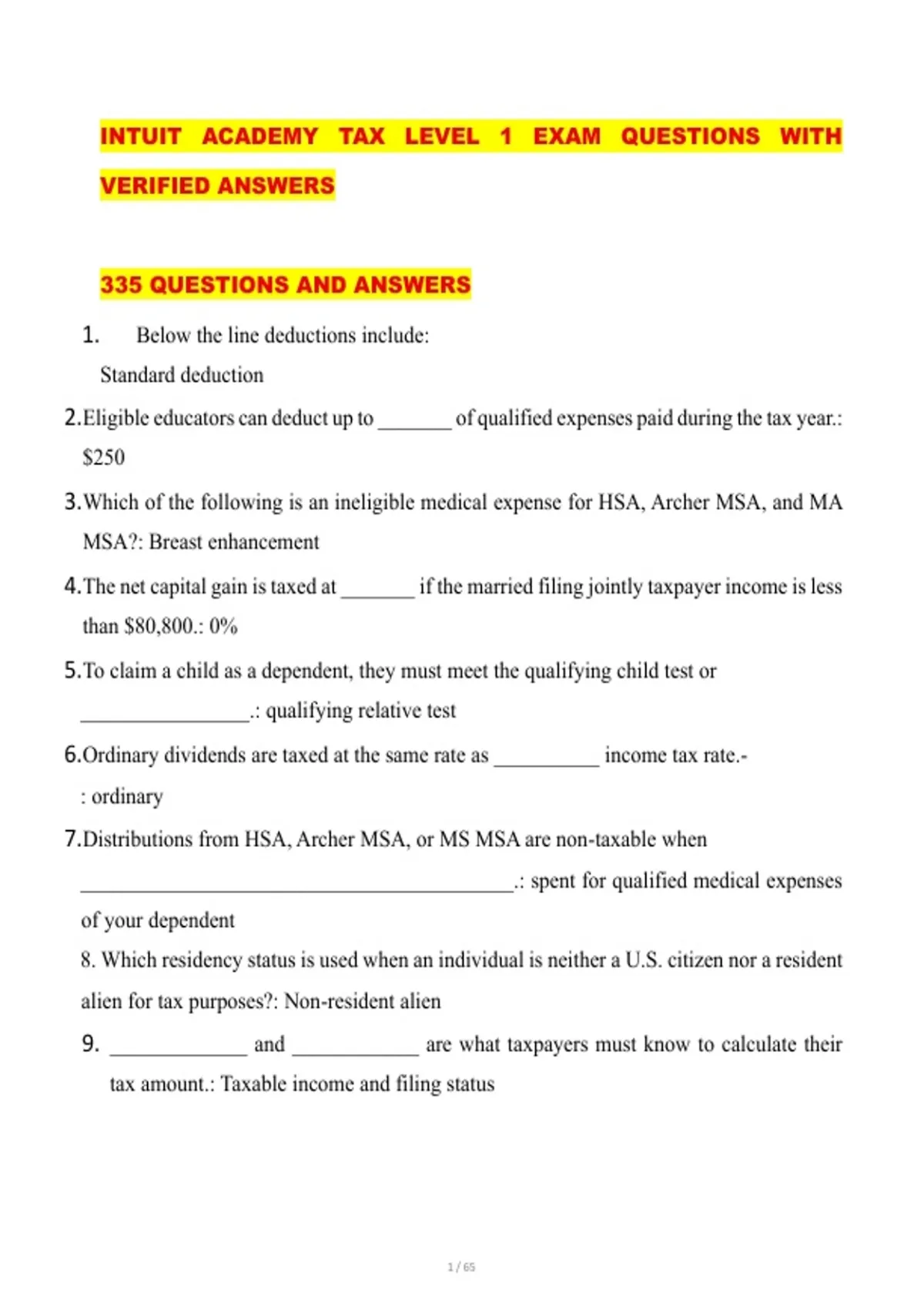 INTUIT ACADEMY TAX LEVEL 1 EXAM QUESTIONS WITH VERIFIED ANSWERS Latest updated