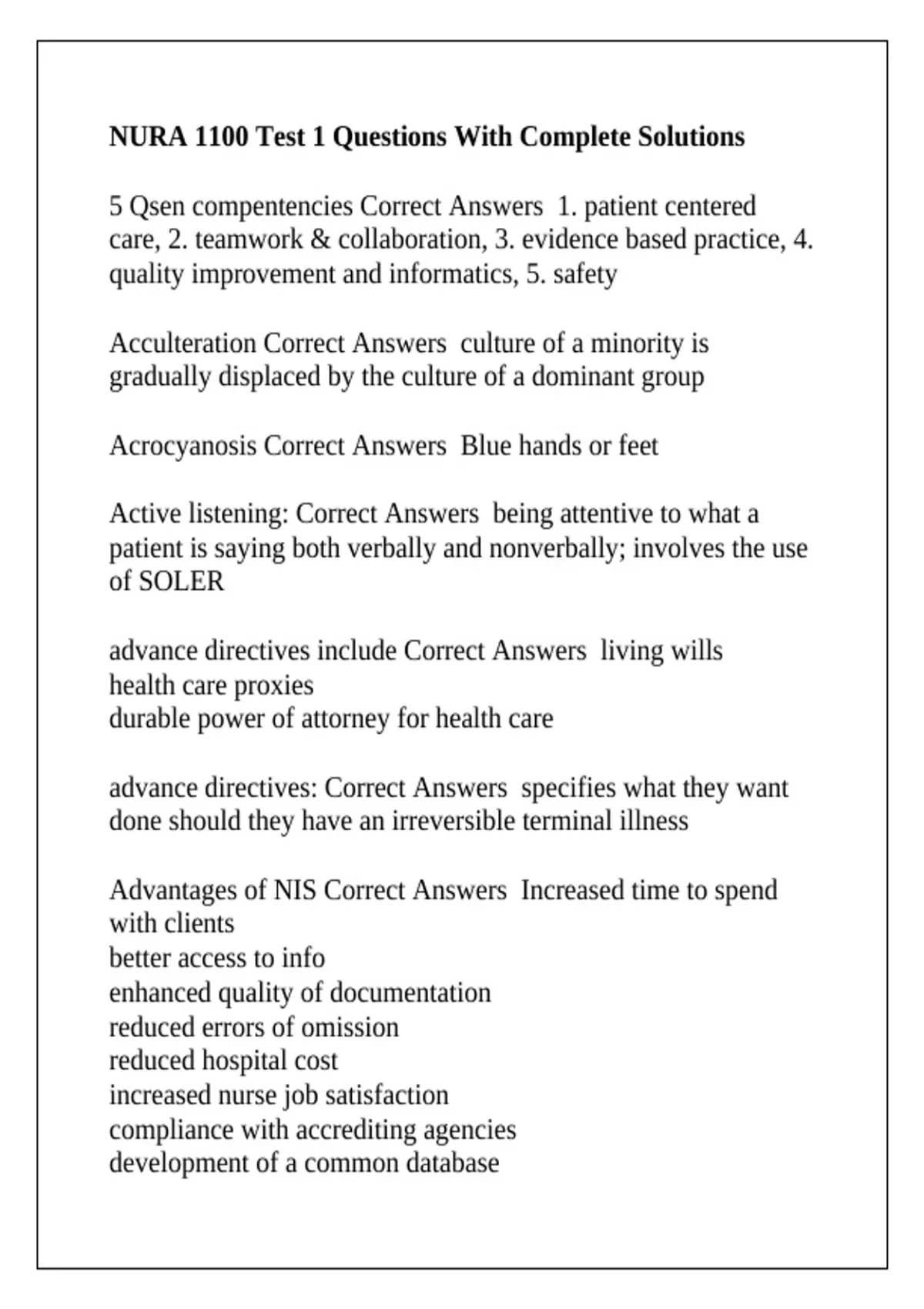 Advantages of NIS Correct Answers Increased time to spend