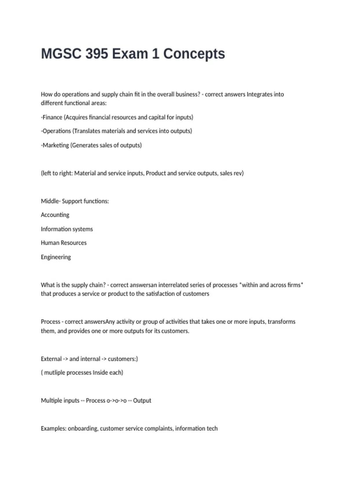 How do operations and supply chain fit in the overall business? - correct answers Integrates into