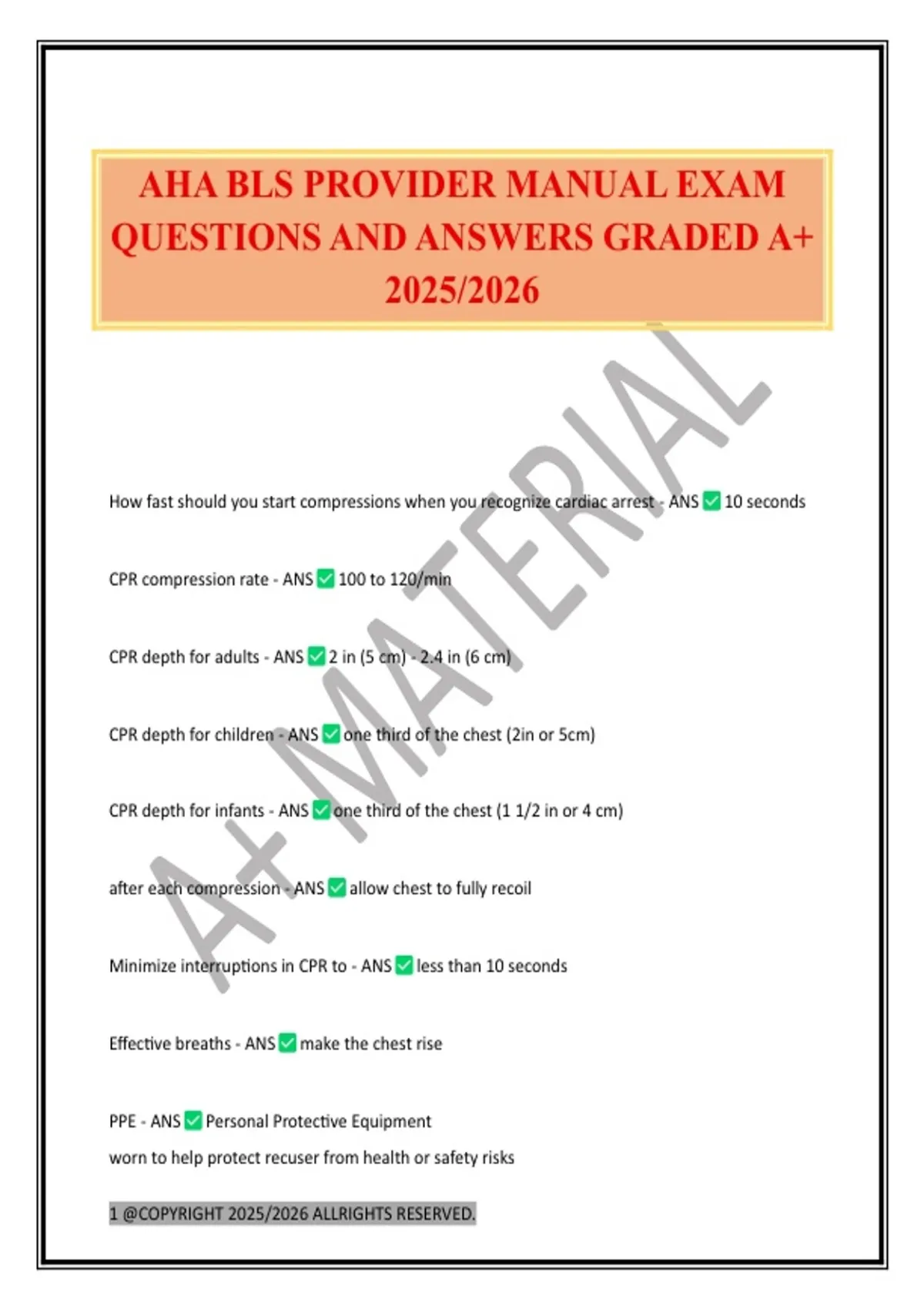 AHA BLS PROVIDER MANUAL EXAM