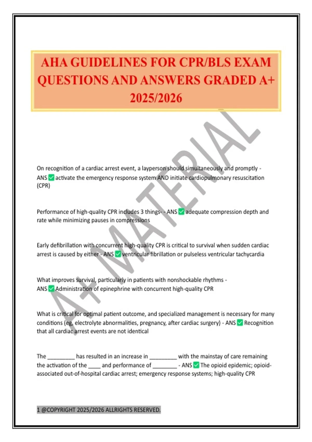AHA GUIDELINES FOR CPR/BLS EXAM