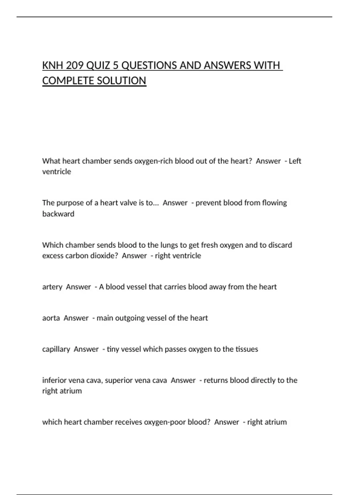 The purpose of a heart valve is to... Answer - prevent blood from flowing