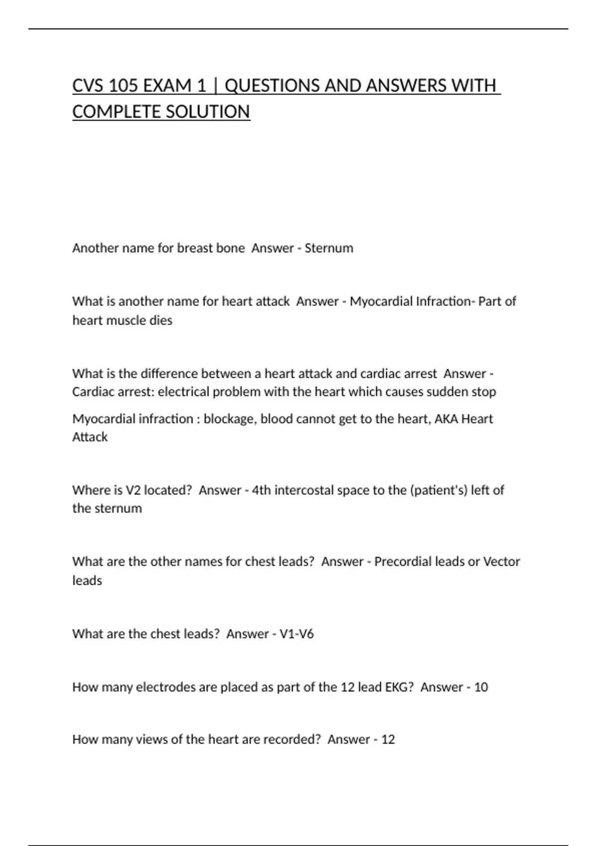 What is another name for heart attack Answer - Myocardial Infraction- Part of
