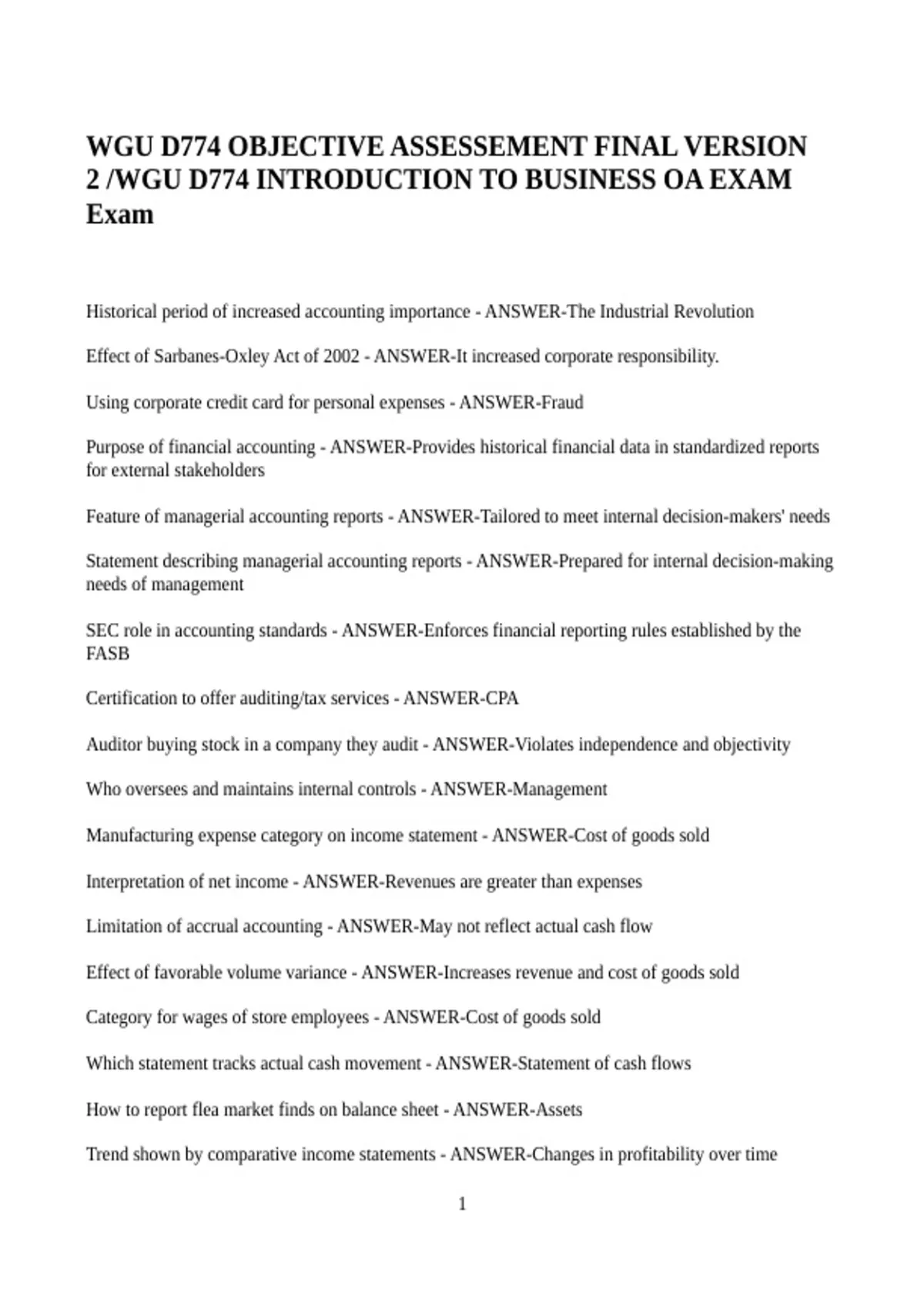 2 /WGU D774 INTRODUCTION TO BUSINESS OA EXAM