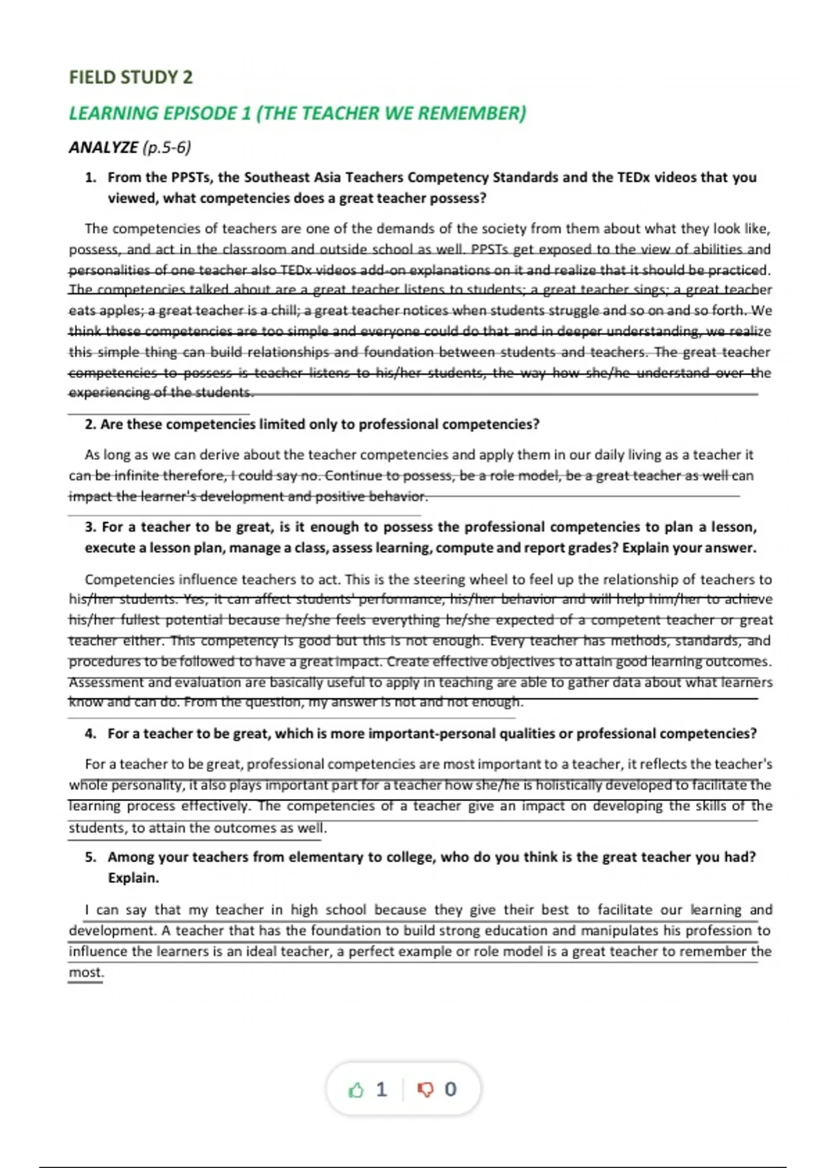 competencies. Through this episode, it enables me to assess myself of how ready I am in the field of teaching. I