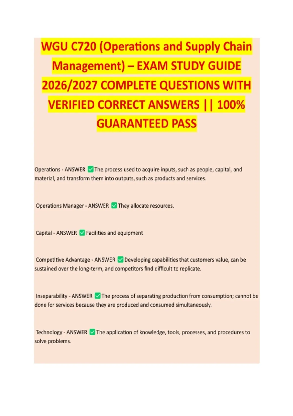 WGU C720 (Operations and Supply Chain Management) – EXAM STUDY GUIDE 2026/2027 COMPLETE QUESTIONS WITH VERIFIED CORRECT ANSWERS || 100% GUARANTEED PASS <NEWEST VERSION>