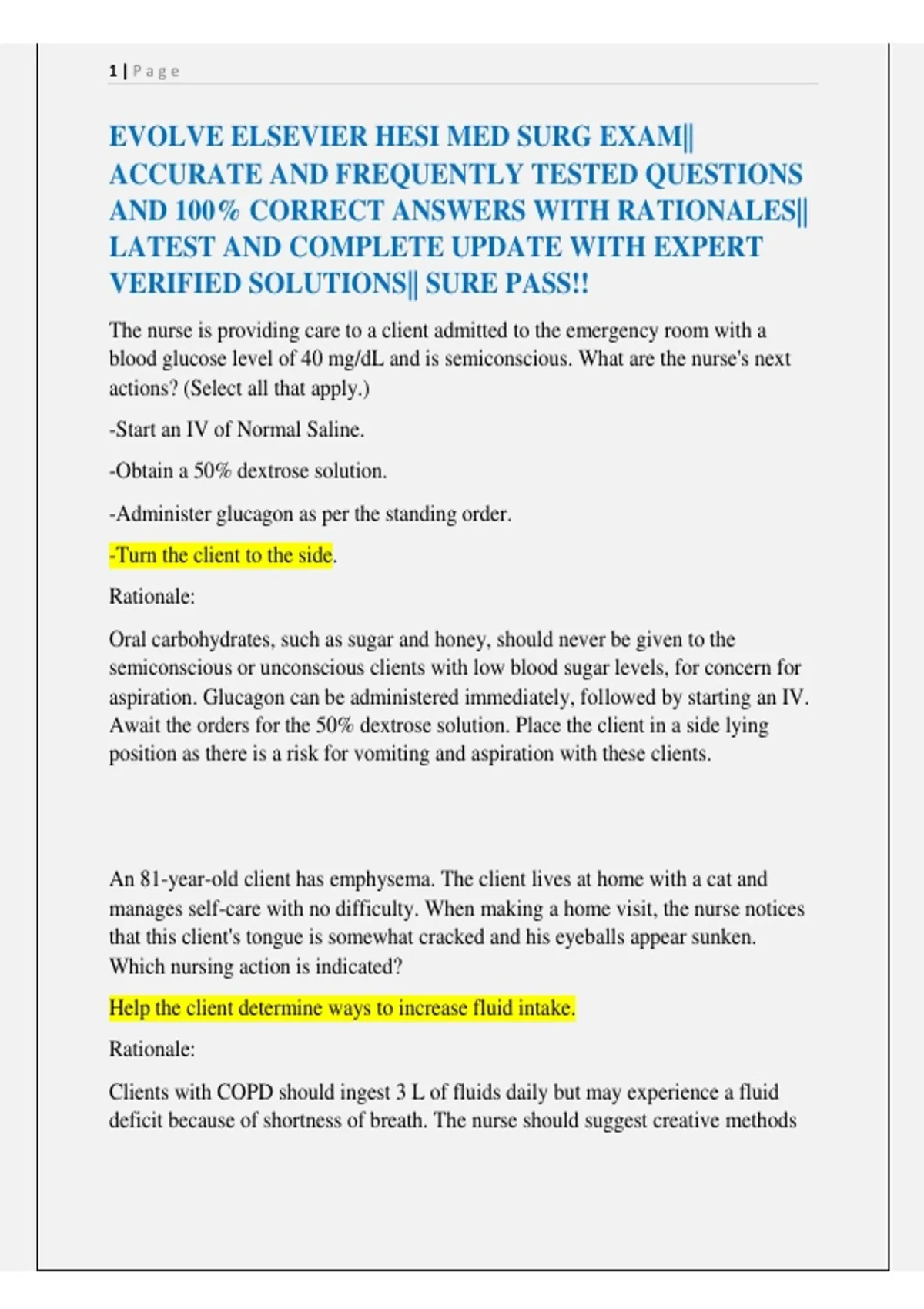 EVOLVE ELSEVIER HESI MED SURG EXAM||