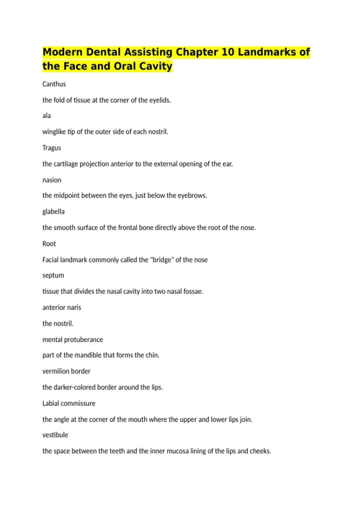 the Face and Oral Cavity