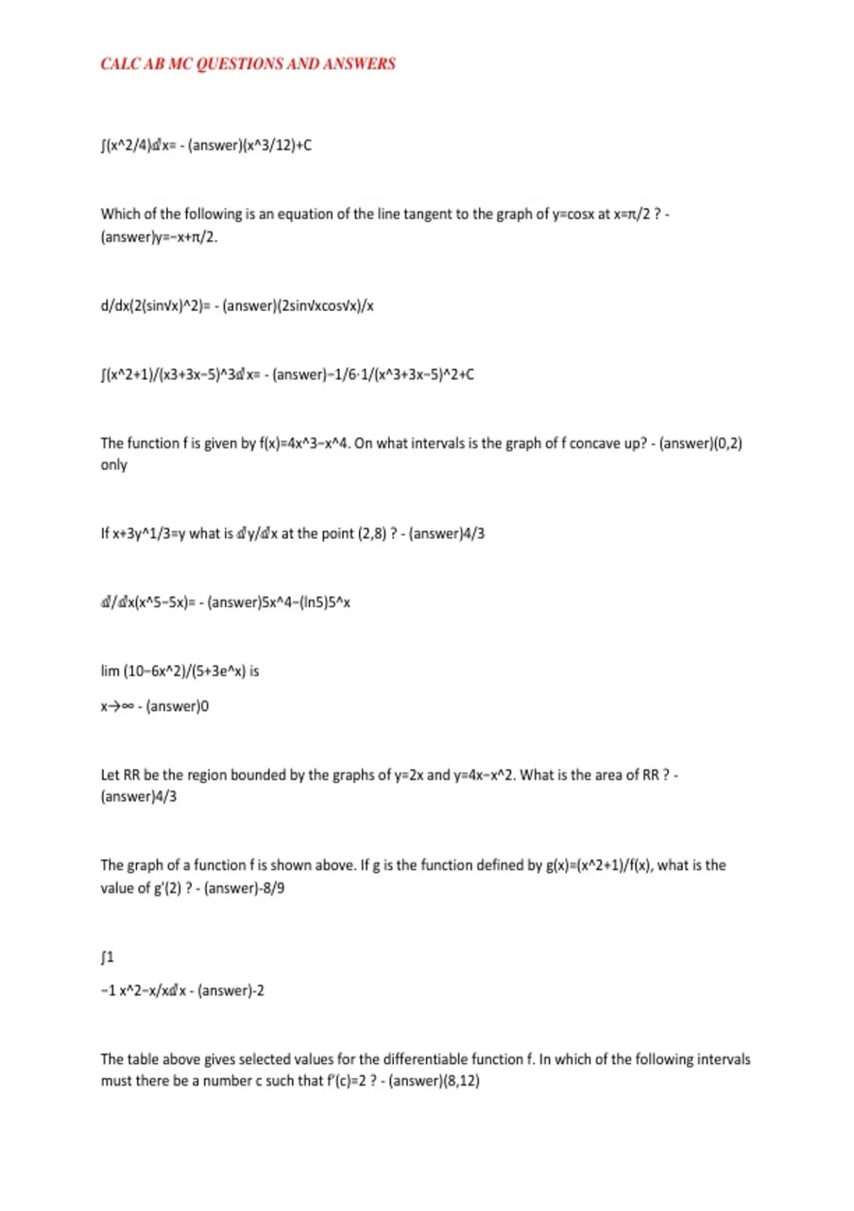 The function f is given by f(x)=4x^3−x^4. On what intervals is the graph of f concave up? - (answer)(0,2)