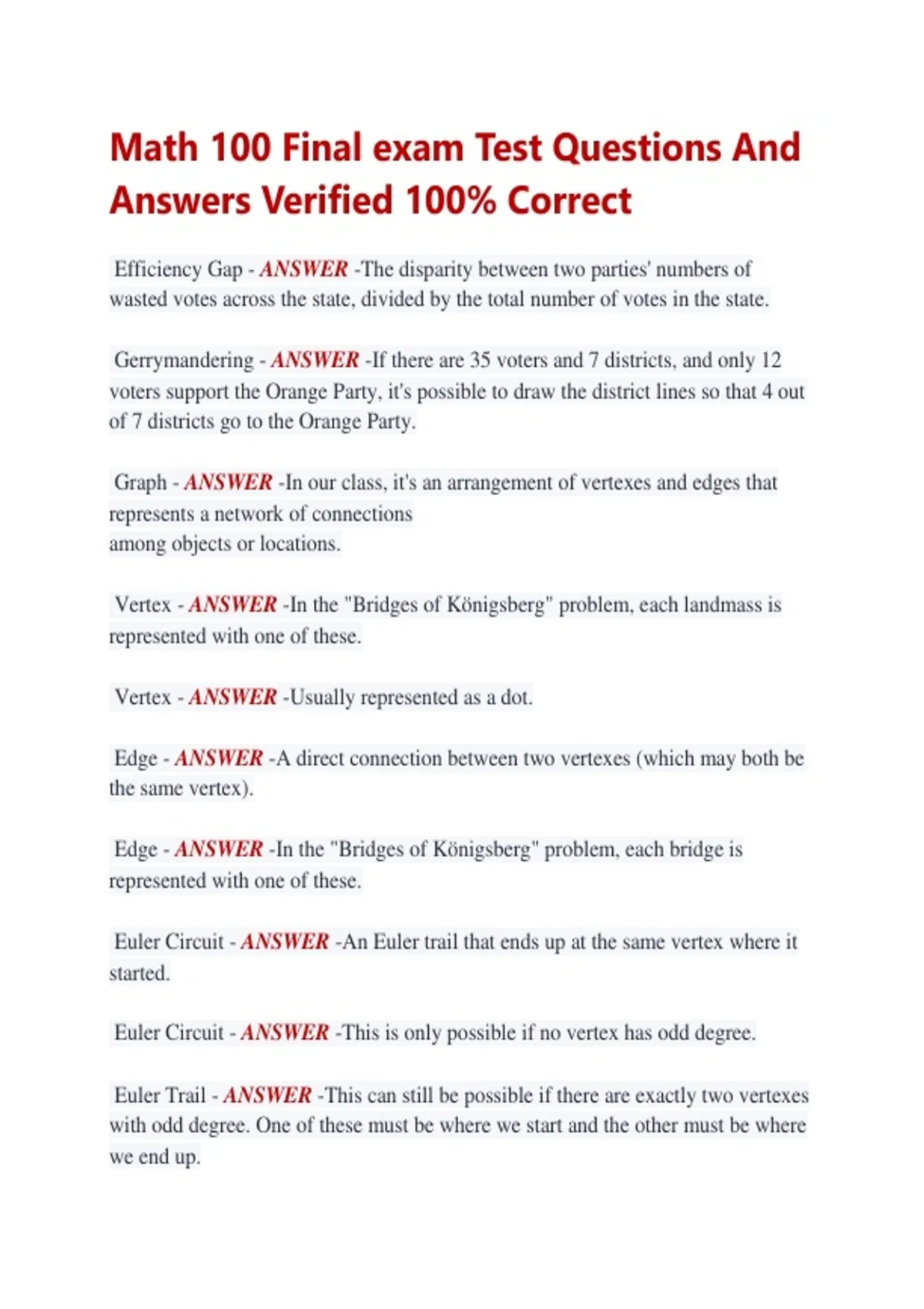 Answers Verified 100% Correct