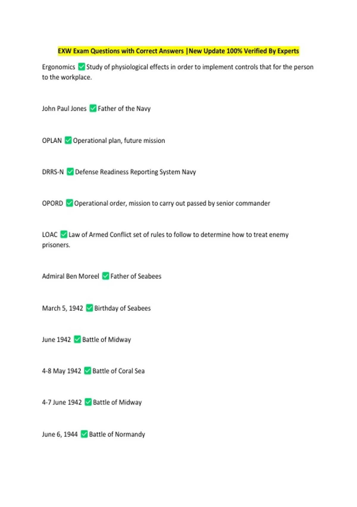 EXW Exam Questions with Correct Answers |New Update 100% Verified By Experts