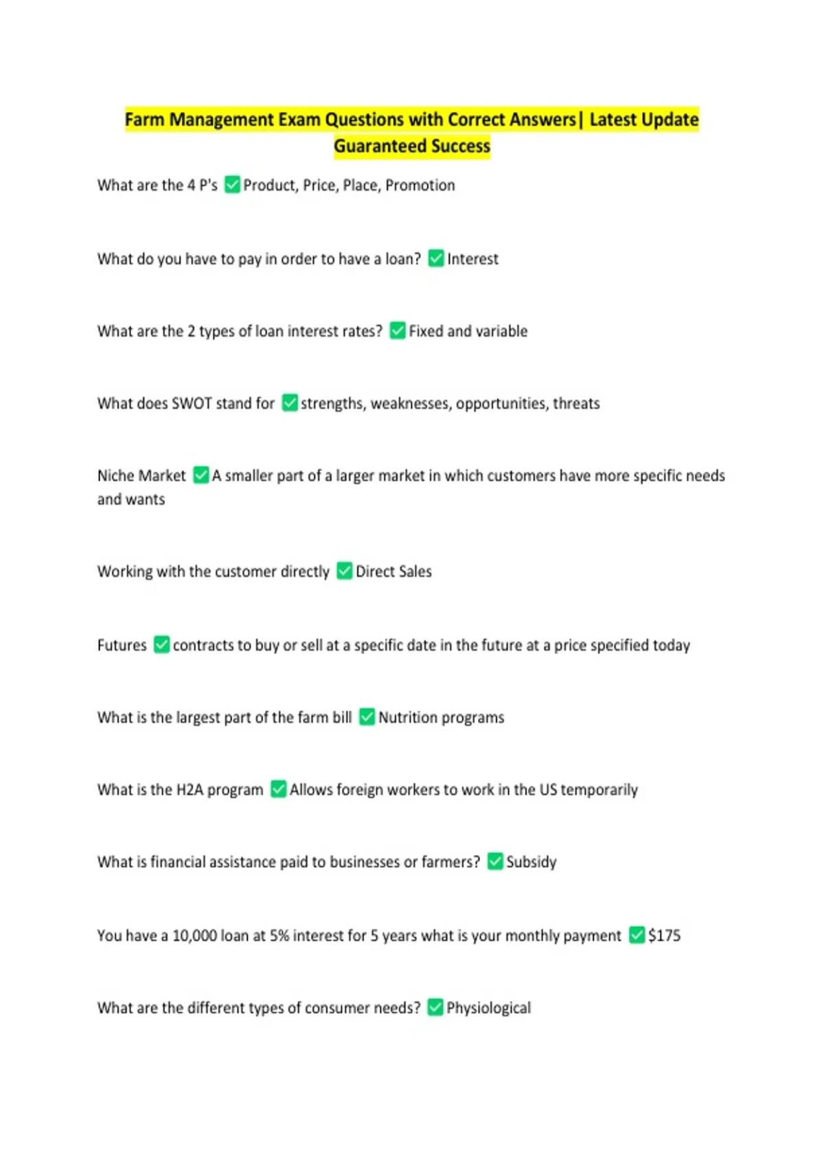 Farm Management Exam Questions with Correct Answers| Latest Update