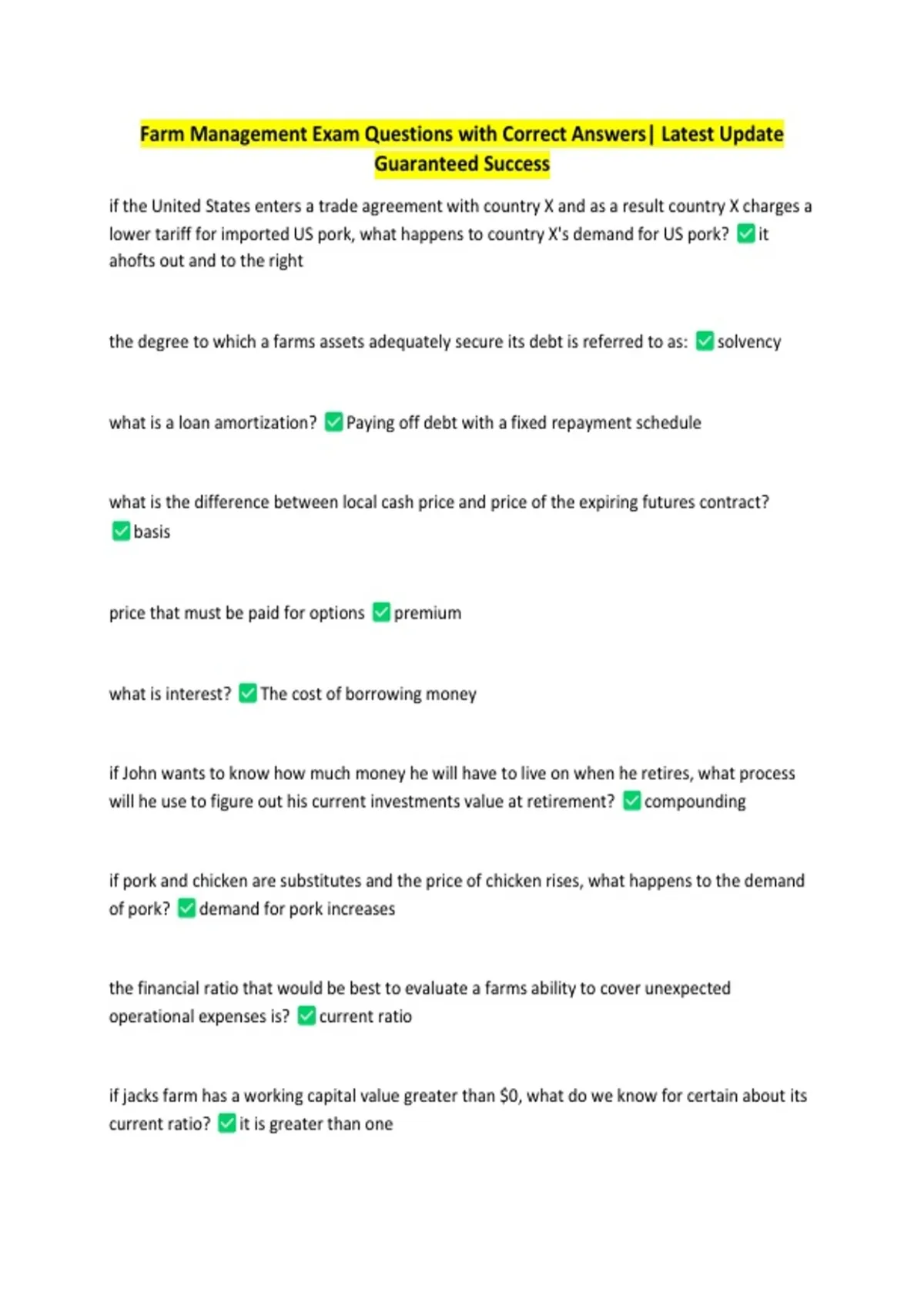 Farm Management Exam Questions with Correct Answers| Latest Update