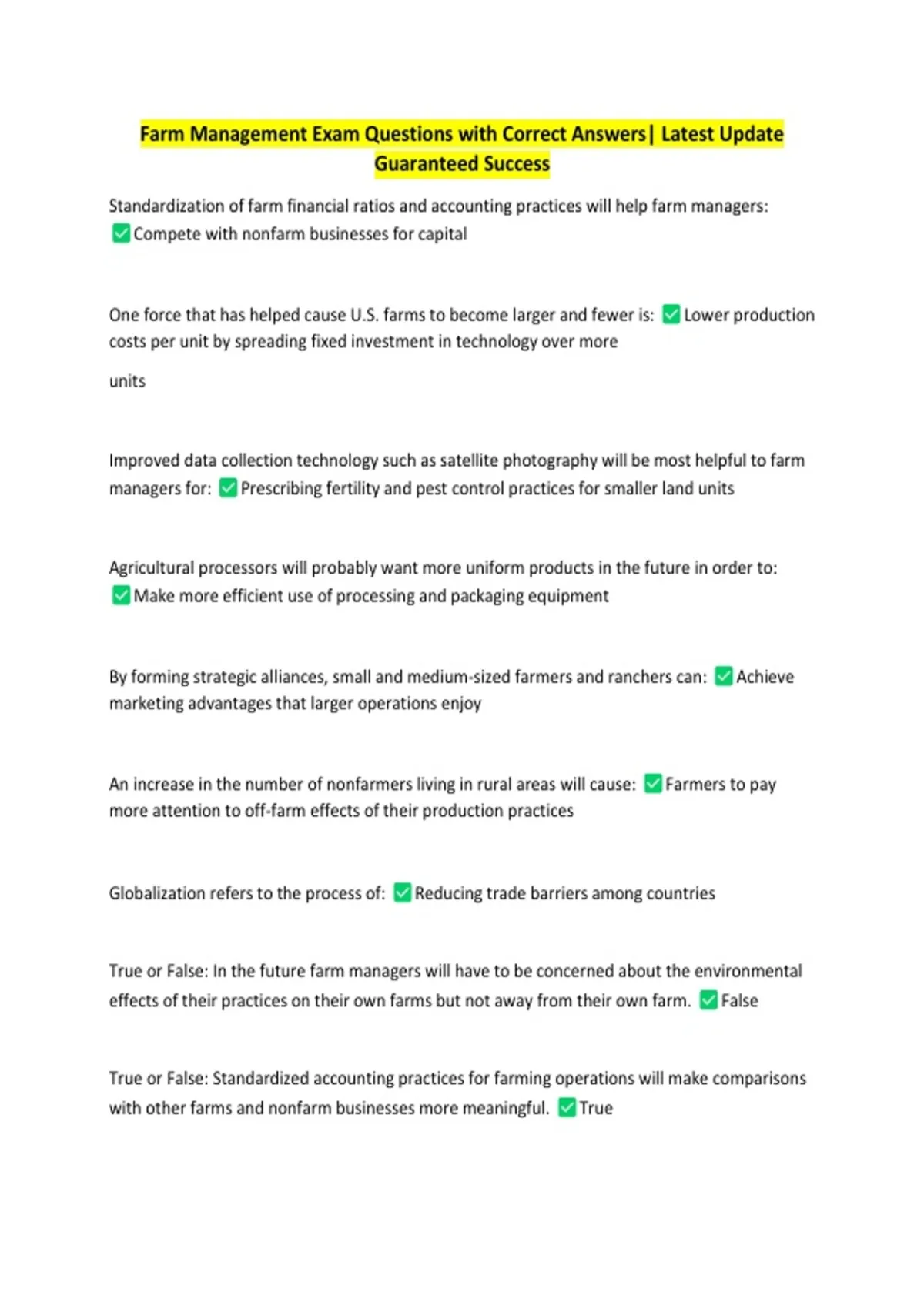 Farm Management Exam Questions with Correct Answers| Latest Update