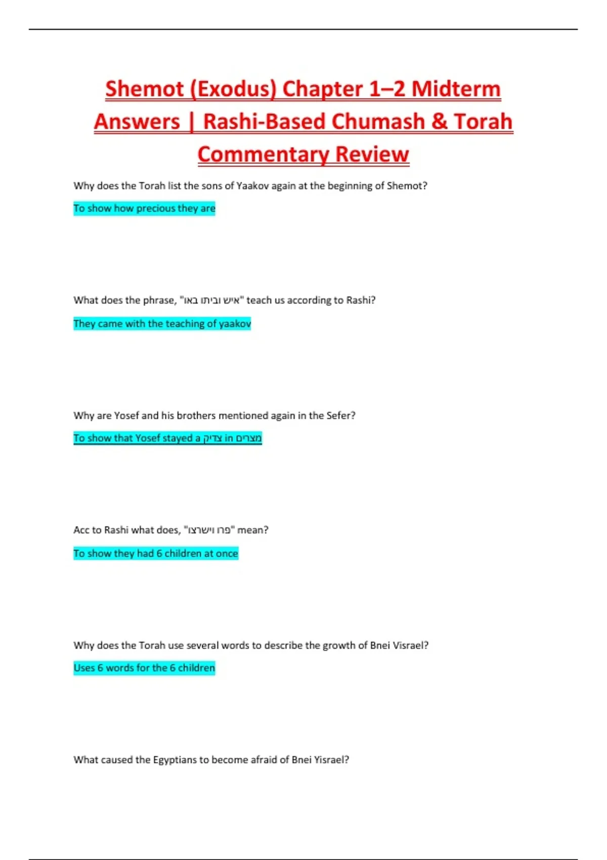 Shemot (Exodus) Chapter 1–2 Midterm