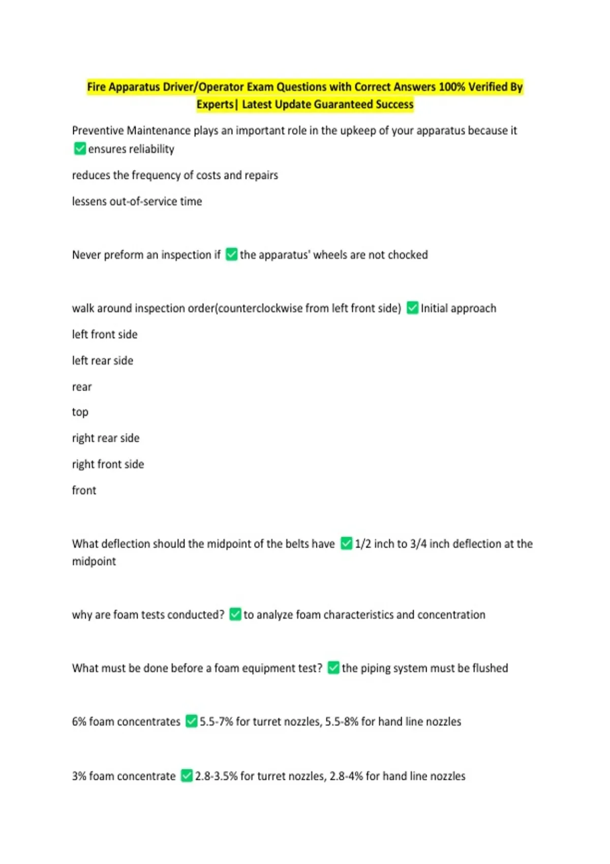 Fire Apparatus Driver/Operator Exam Questions with Correct Answers 100% Verified
