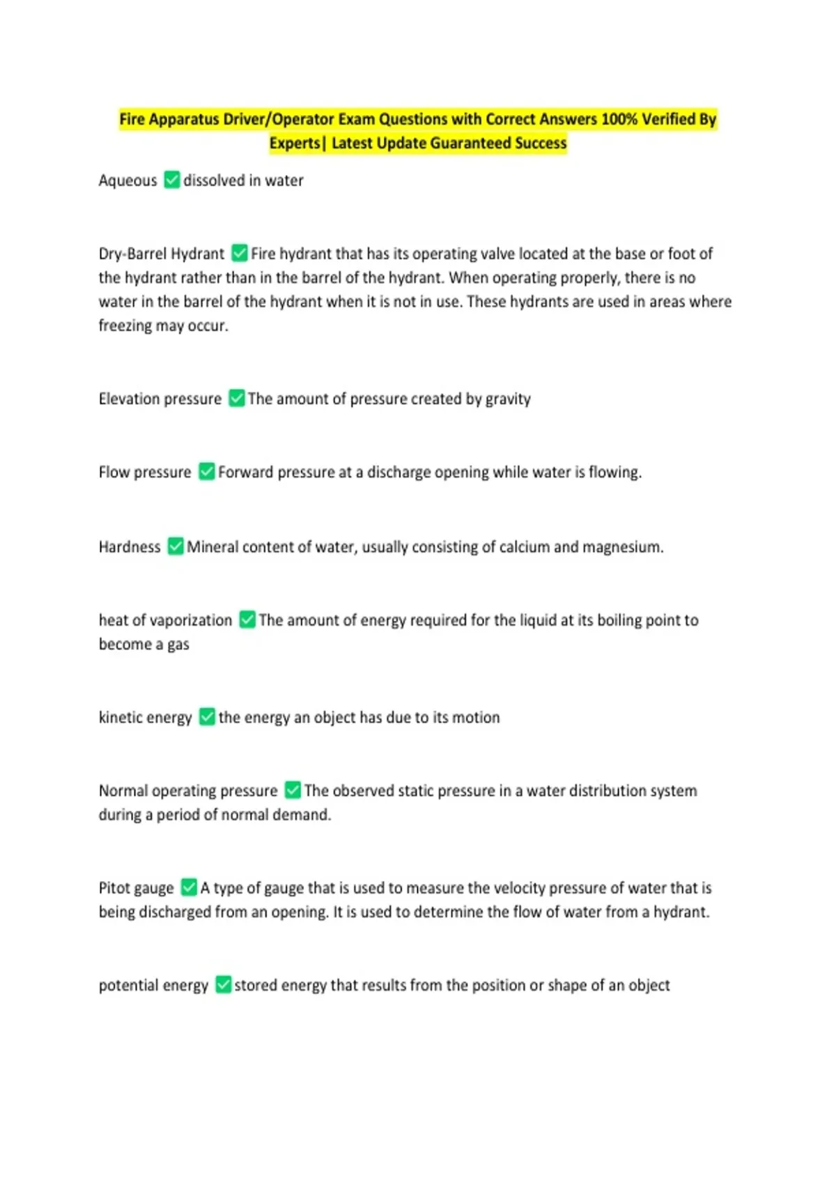 Fire Apparatus Driver/Operator Exam Questions with Correct Answers 100% Verified By