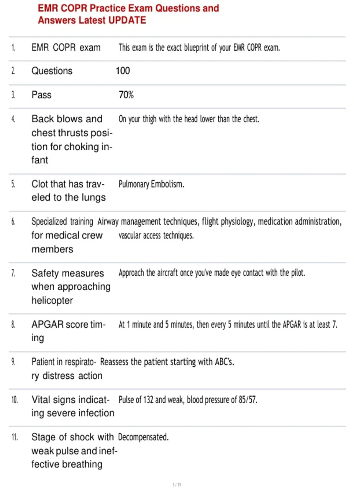 1. EMR COPR exam This exam is the exact blueprint of your EMR COPR exam.
