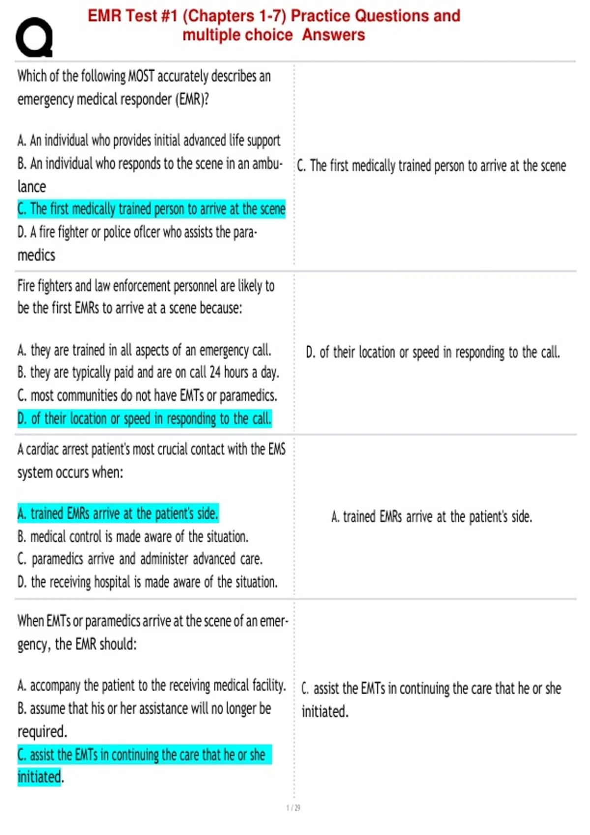 EMR Test #1 (Chapters 1-7) Practice Questions and