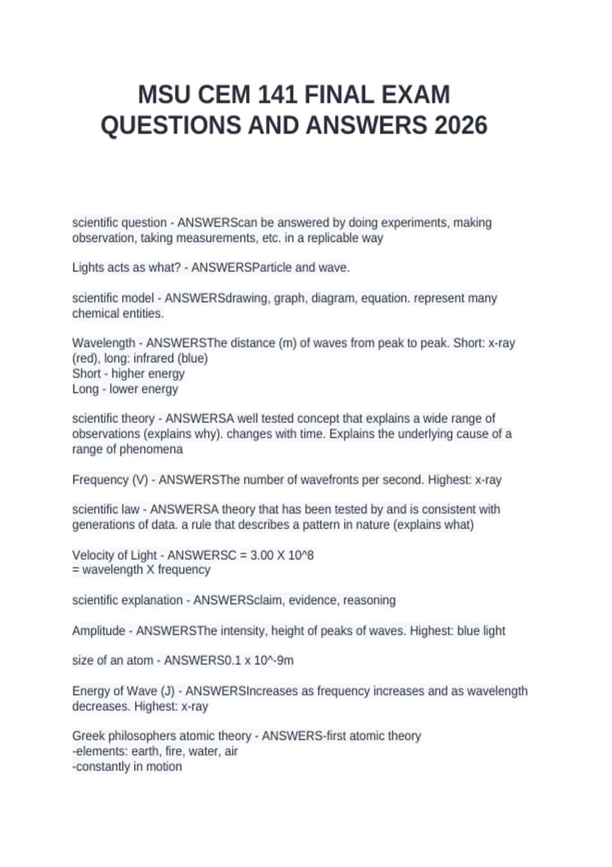 Wavelength - ANSWERSThe distance (m) of waves from peak to peak. Short: x-ray