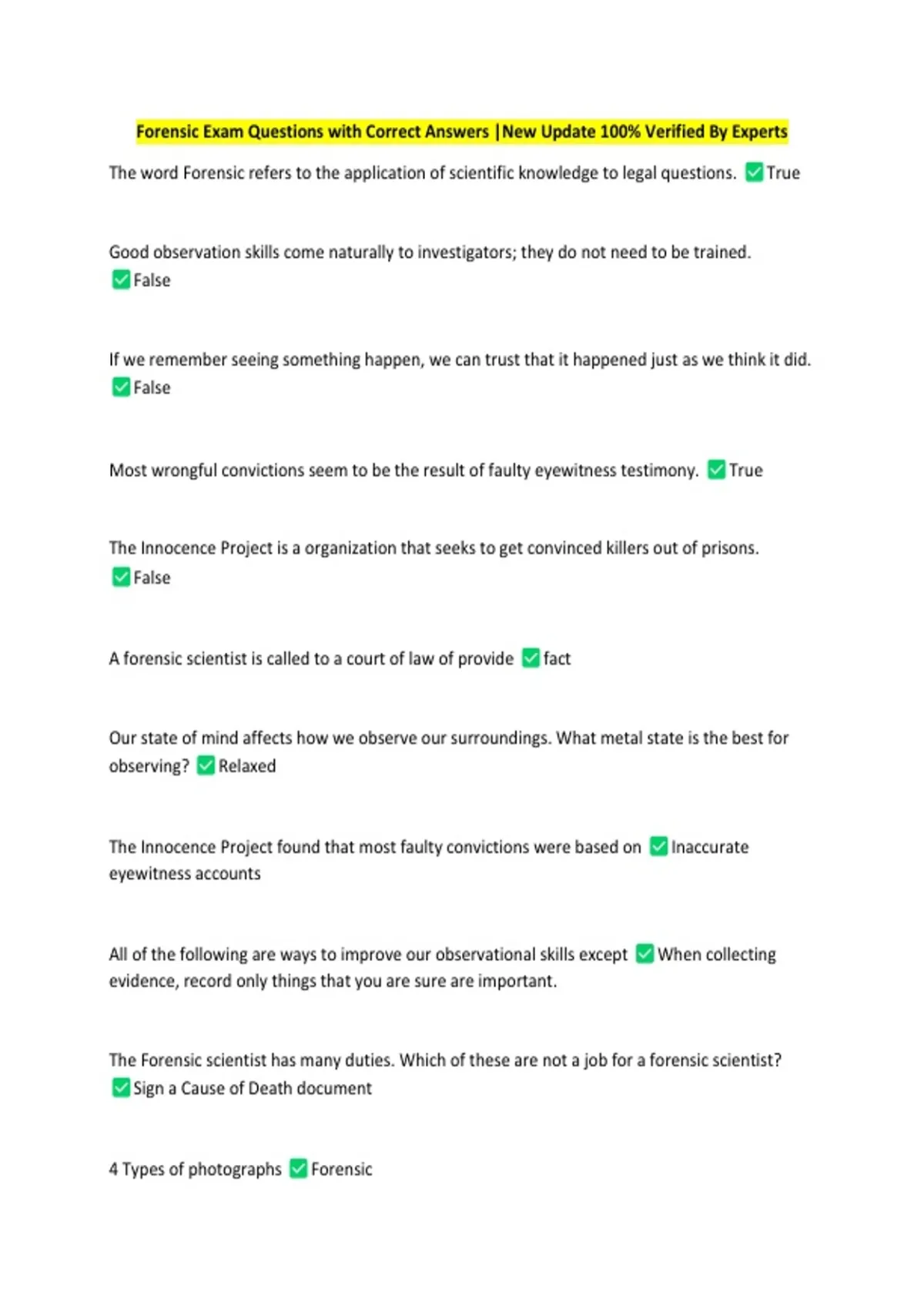 Forensic Exam Questions with Correct Answers |New Update 100% Verified By Experts
