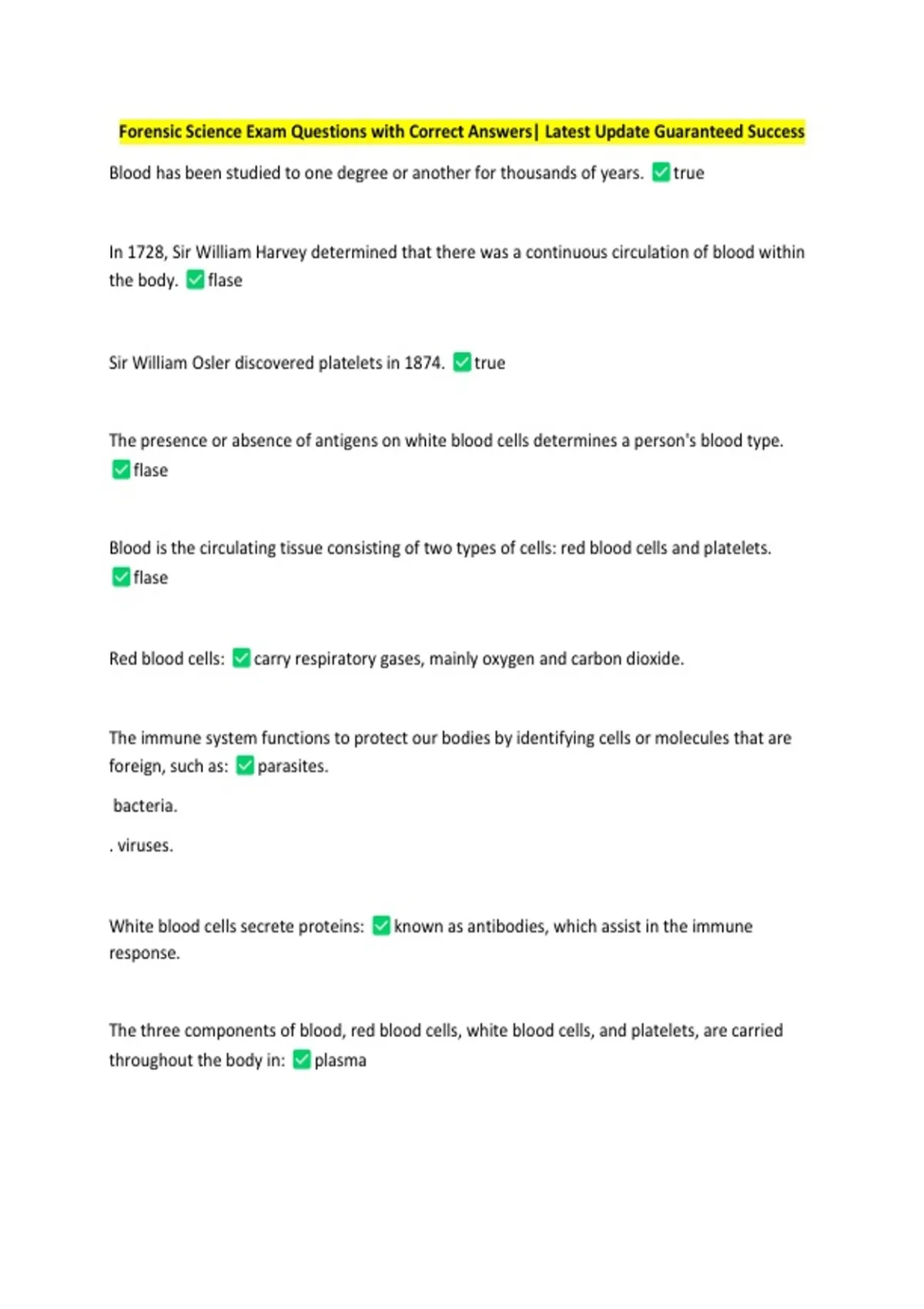 Forensic Science Exam Questions with Correct Answers| Latest Update Guaranteed Success