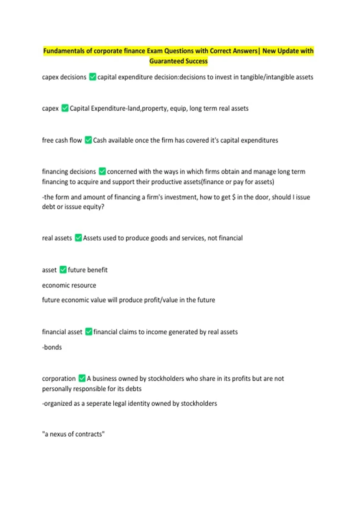 Fundamentals of corporate finance Exam Questions with Correct Answers| New Update with
