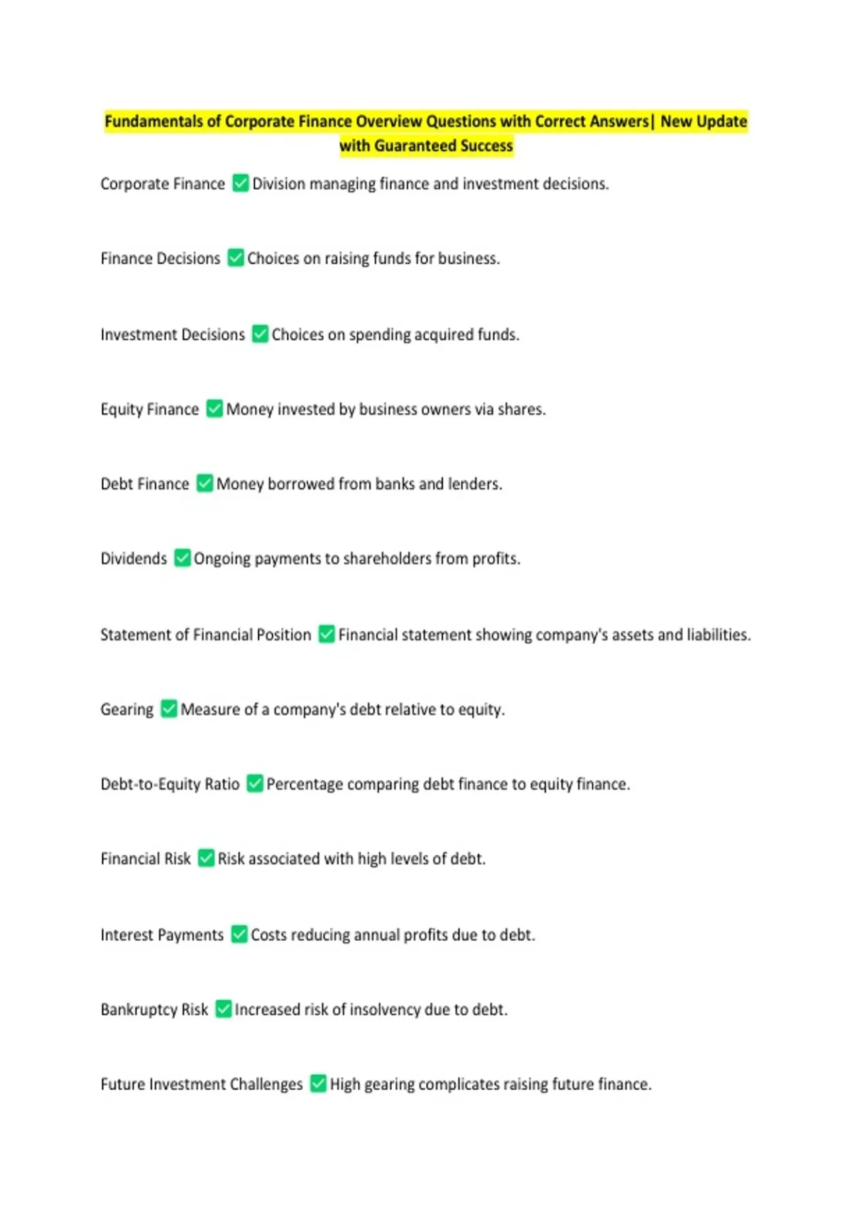 Fundamentals of Corporate Finance Overview Questions with Correct Answers| New Update