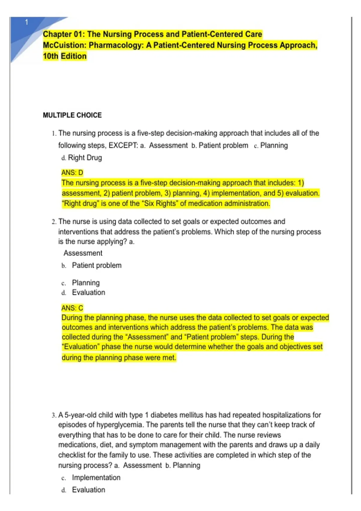 1. The nursing process is a five-step decision-making approach that includes all of the