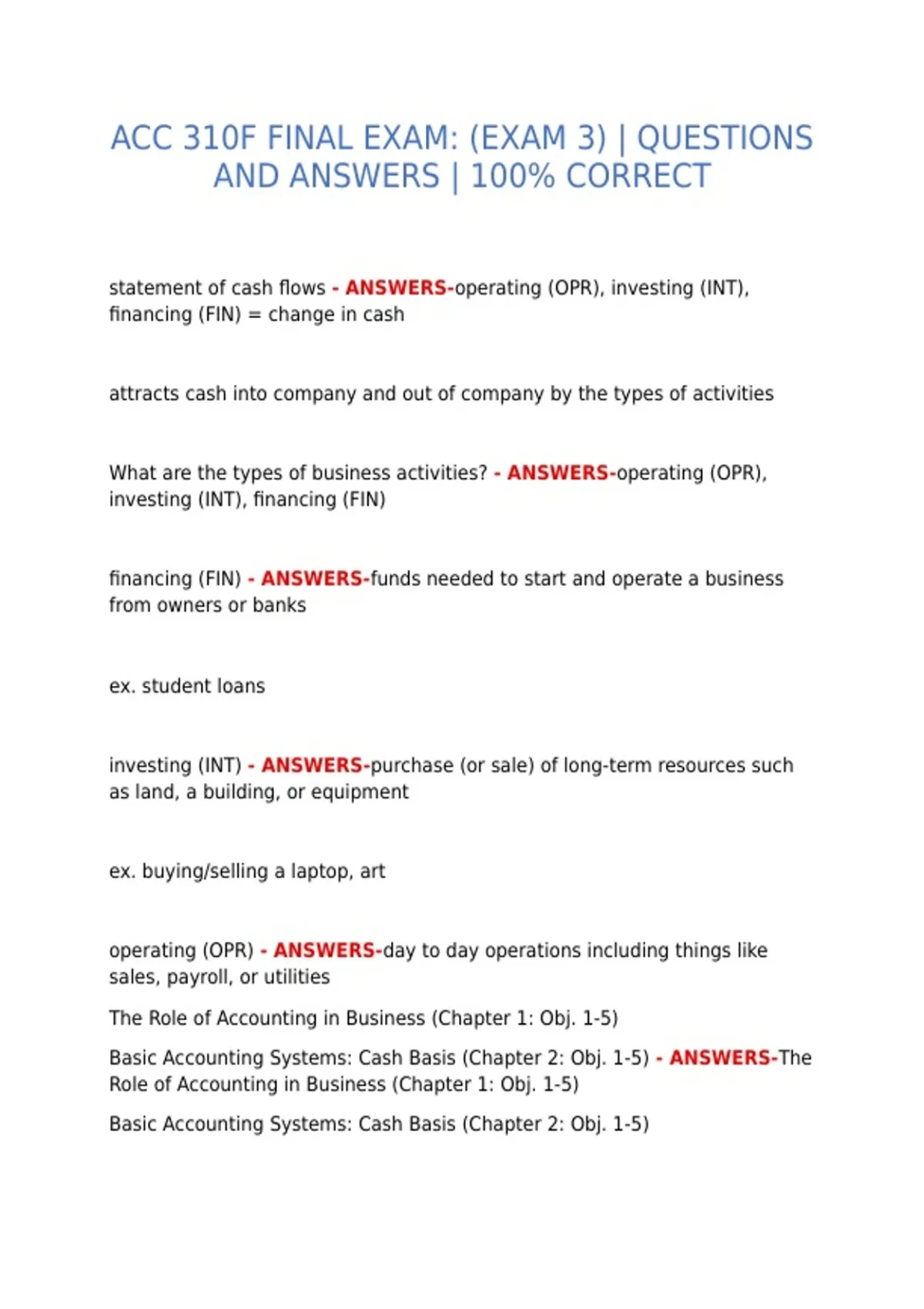 ACC 310F FINAL EXAM: (EXAM 3) | QUESTIONS