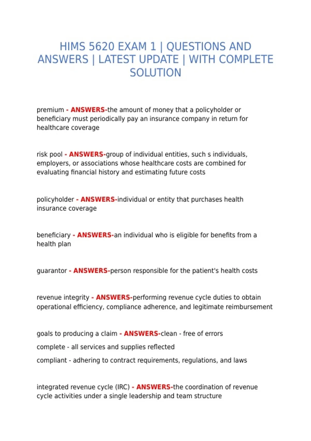HIMS 5620 – Exam 1 | Updated Questions & Complete Solutions