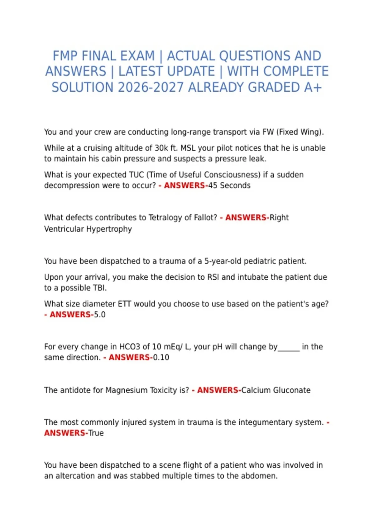 FMP FINAL EXAM | ACTUAL QUESTIONS AND