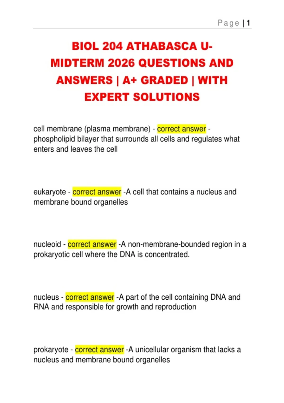 BIOL 204 ATHABASCA U- MIDTERM 2026 QUESTIONS AND ANSWERS | A+ GRADED | WITH EXPERT SOLUTIONS