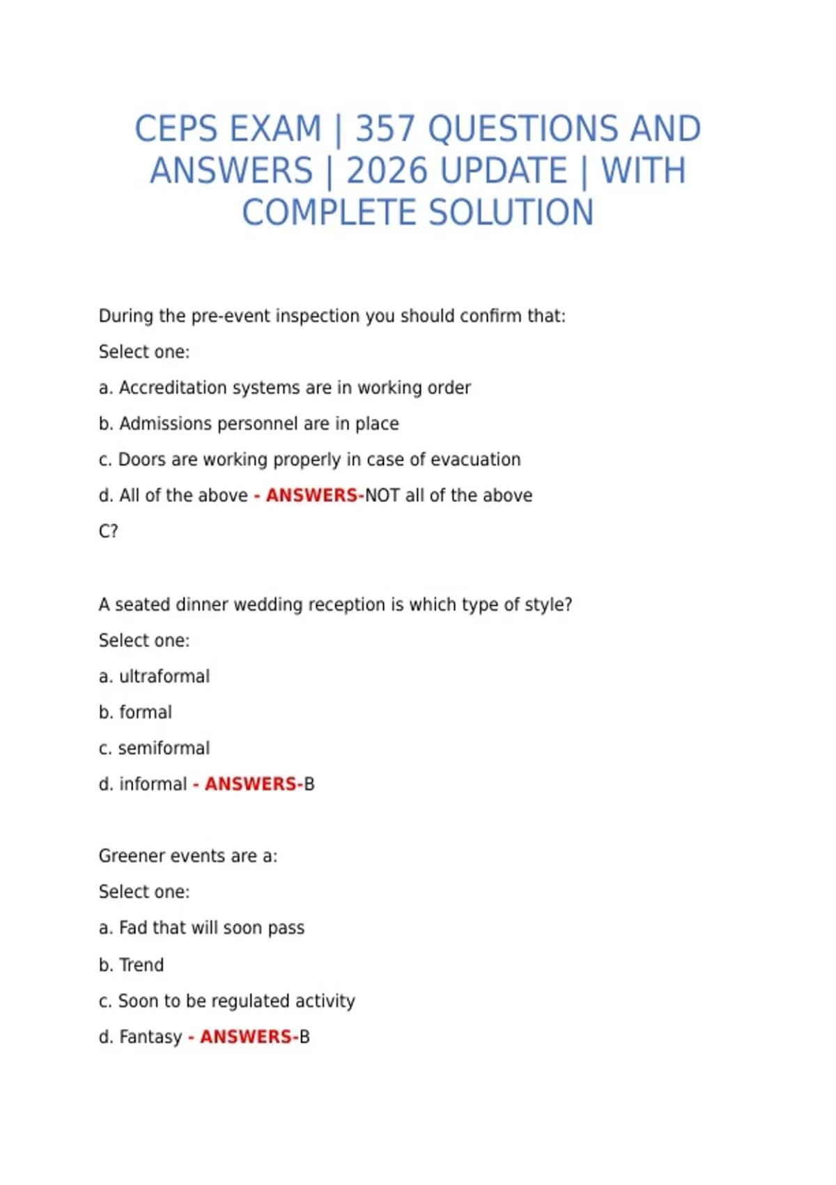 CEPS EXAM | 357 QUESTIONS AND ANSWERS | 2026 UPDATE | WITH COMPLETE SOLUTION