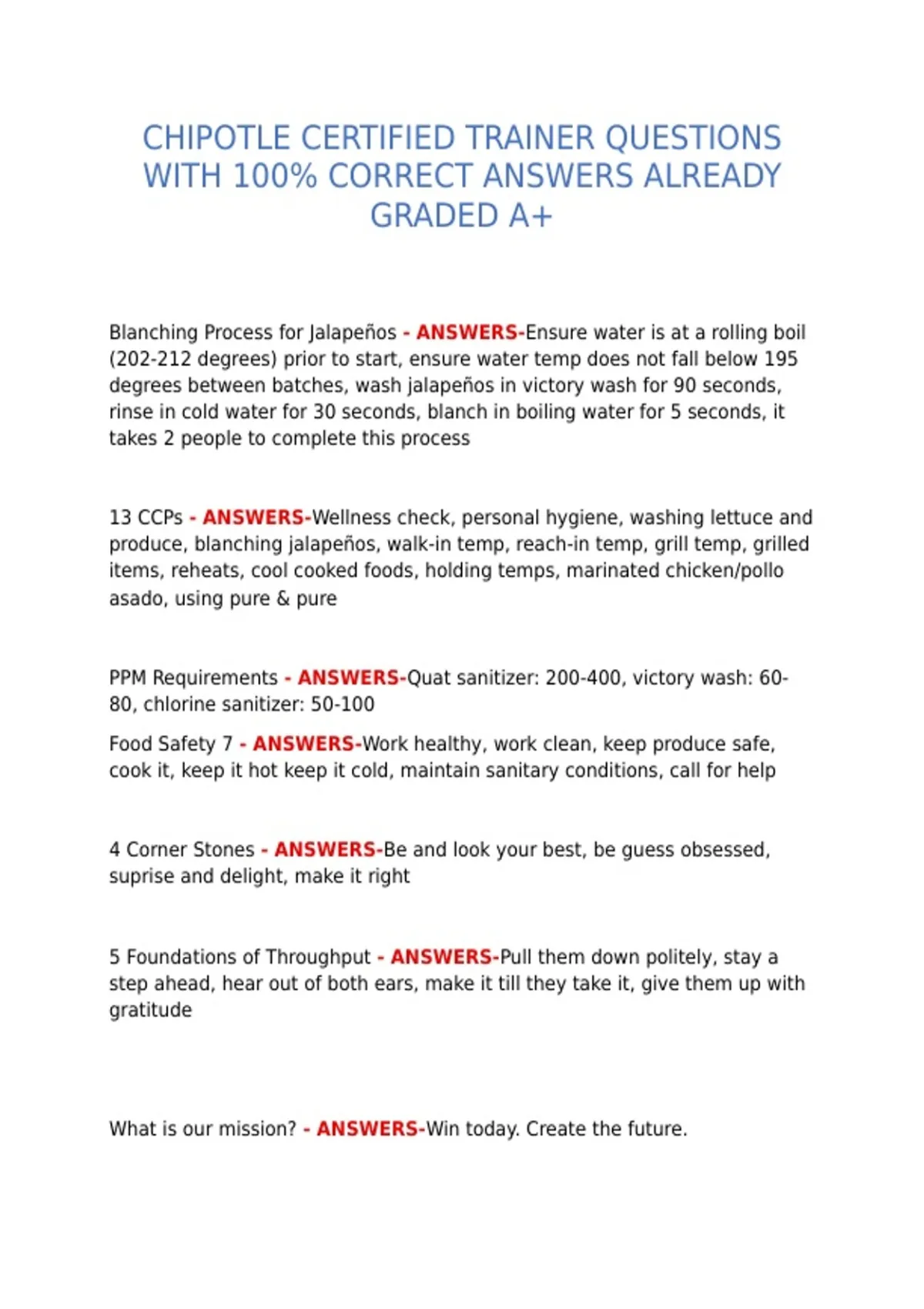 CHIPOTLE CERTIFIED TRAINER QUESTIONS WITH 100% CORRECT ANSWERS ALREADY GRADED A+