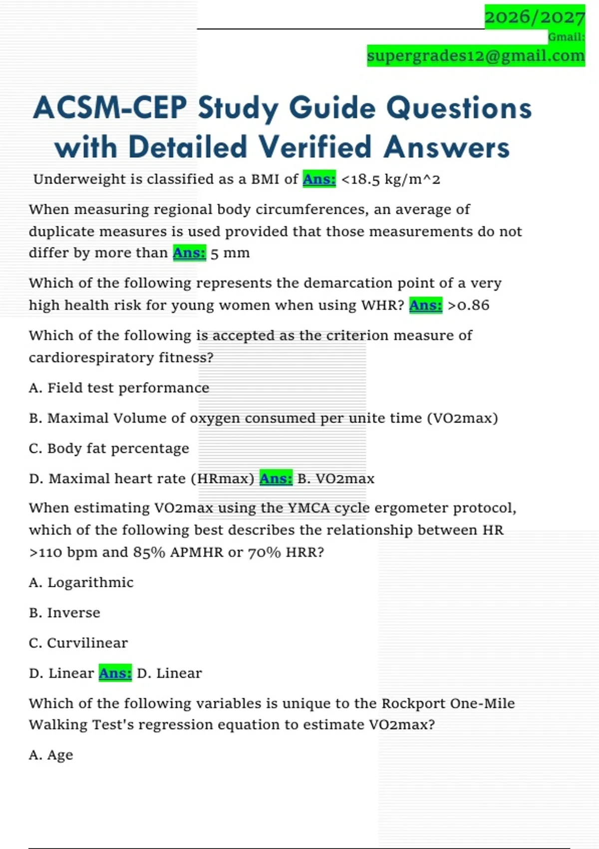 ACSM-CEP Study Guide Questions with Detailed Verified Answers