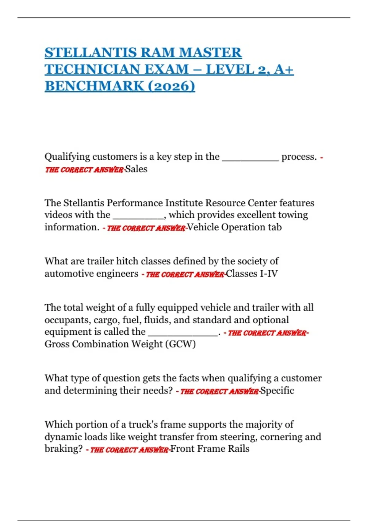automotive engineers - THE CORRECT ANSWER-Classes I-IV