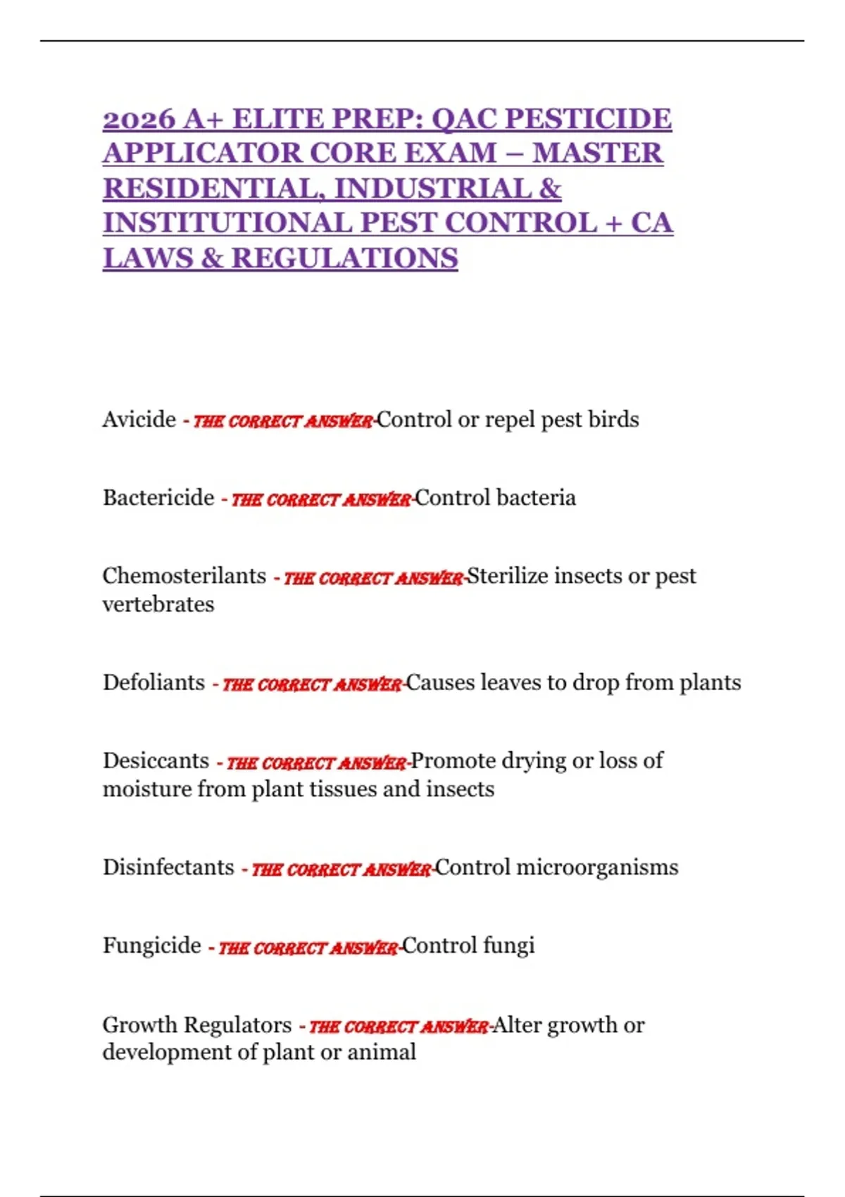 2026 A+ ELITE : QAC PESTICIDE APPLICATOR CORE