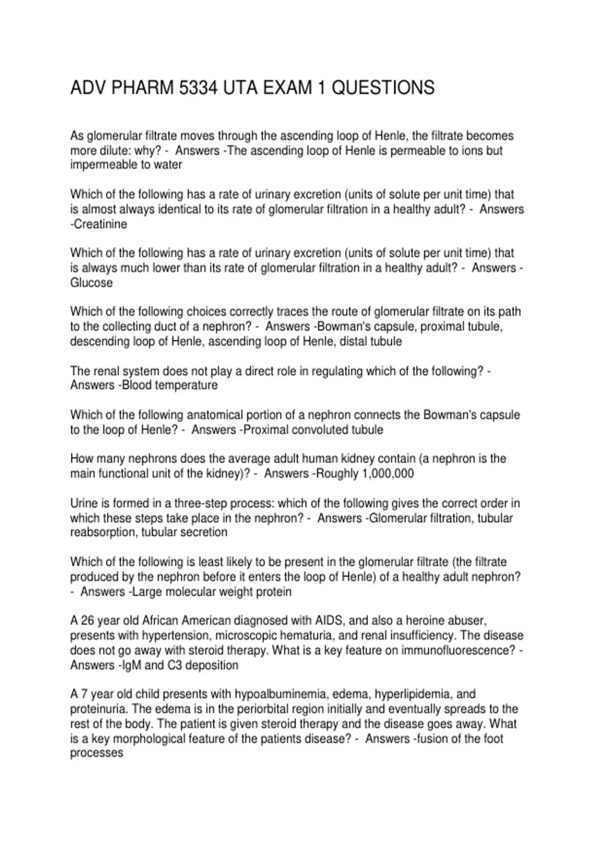 ADV PHARM 5334 UTA EXAM 1 QUESTIONS