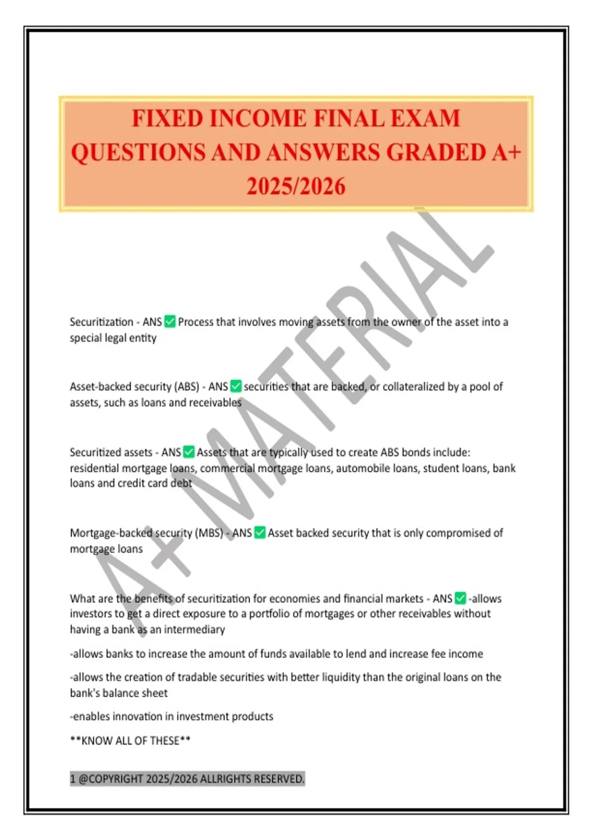 Mortgage-backed security (MBS) - ANS Asset backed security that is only compromised of