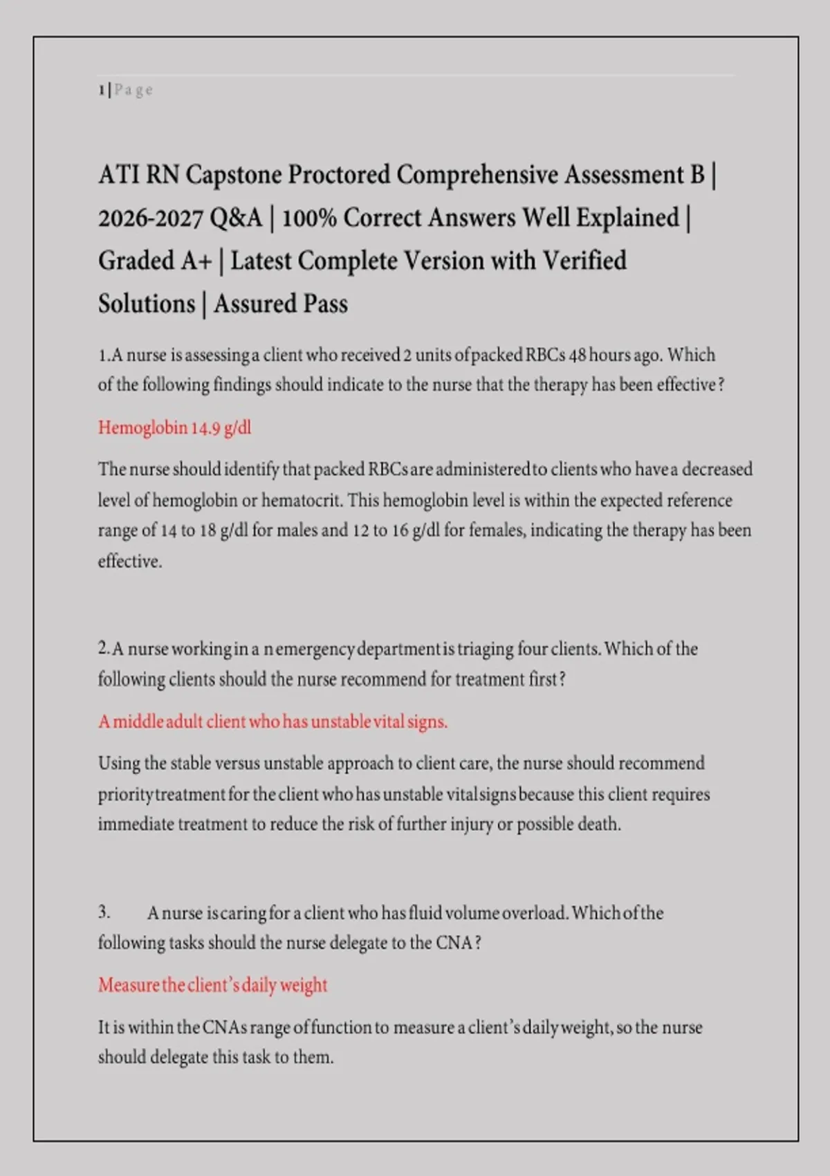 LATEST COMPLETE VERSION: Achieve assured success on the ATI RN Capstone Proctored Comprehensive Assessment B with this ultimate guide. Features 100% correct answers well explained, verified solutions, and is already graded A+. Covers integrated nursing concepts across all systems for the "B" version of the exam. This comprehensive resource is your key to mastering the proctored comprehensive assessment and securing a top score on your first attempt.