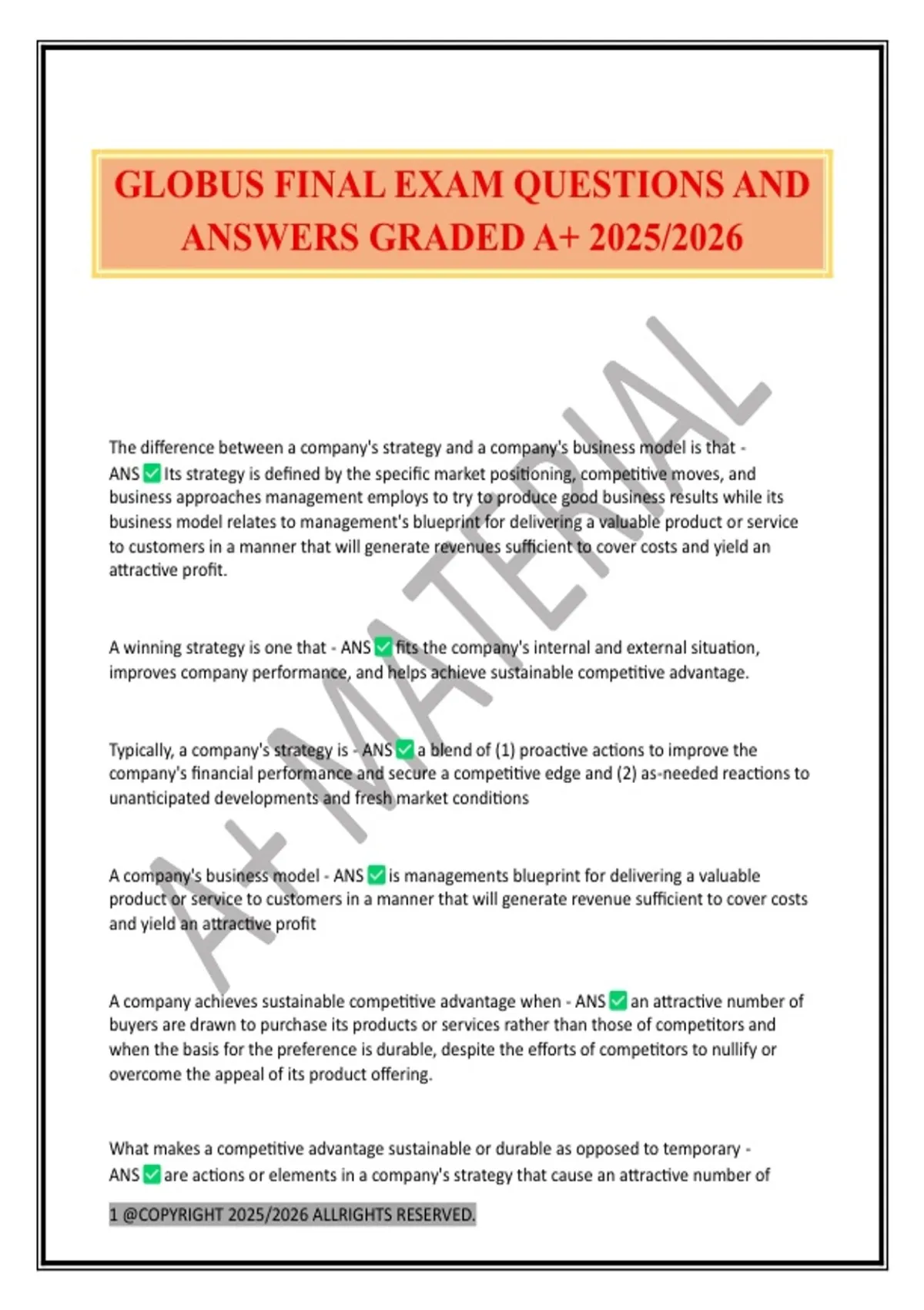 GLOBUS FINAL EXAM QUESTIONS AND ANSWERS GRADED A+ 2025/2026