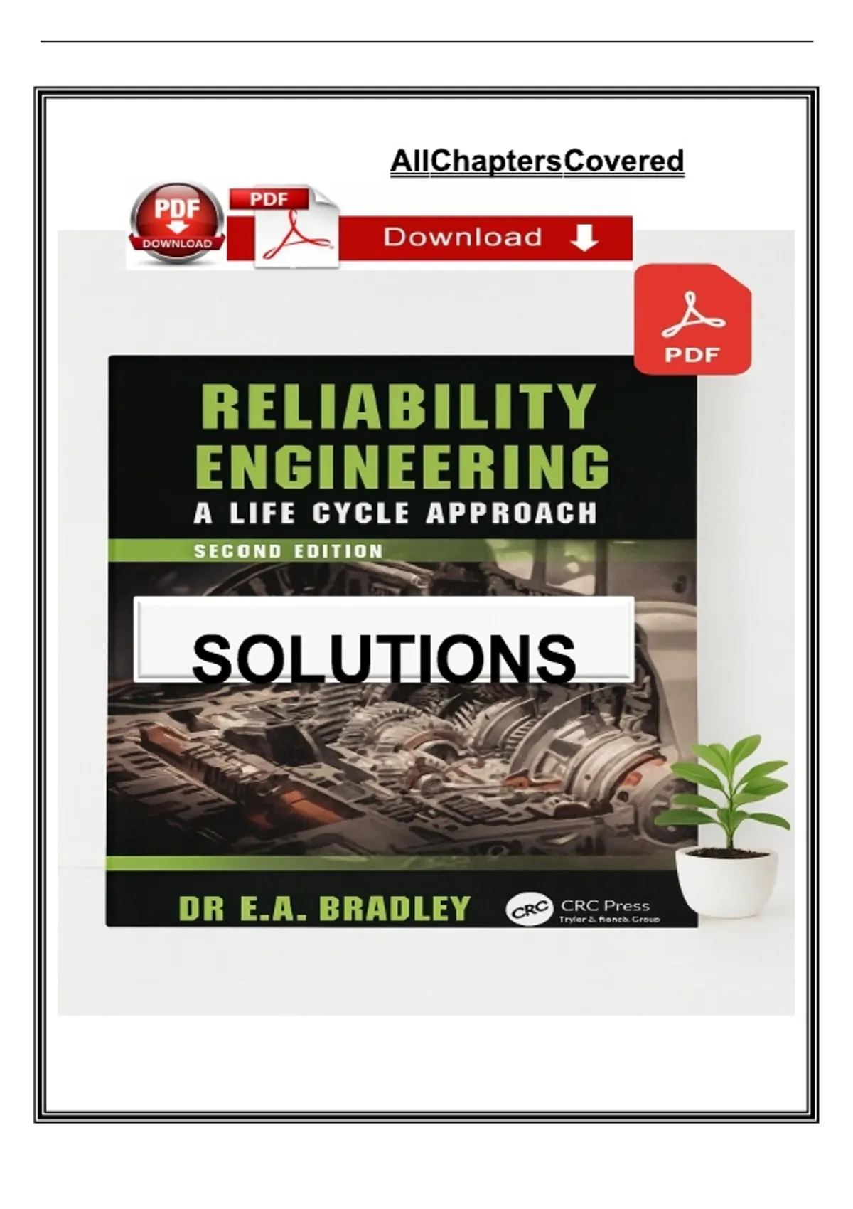 This Solutions Manual for Reliability Engineering, 2nd Edition by David Bradley is a comprehensive academic support resource for students and professionals in mechanical, civil, electrical, and industrial engineering. It provides fully worked, step-by-step solutions to all end-of-chapter problems from the textbook, helping students master reliability analysis concepts, techniques, and practical applications. The solutions cover key topics including: Basic concepts of reliability and failure mechanisms Probability distributions used in reliability analysis Life data analysis and reliability testing System reliability modeling and block diagrams Series, parallel, and complex system reliability calculations Fault tree analysis and reliability block diagrams Maintainability, availability, and lifecycle reliability Reliability improvement, design for reliability, and risk assessment Each solution emphasizes analytical methods, practical engineering applications, and accurate calculations, allowing students to confidently solve reliability engineering problems encountered in real-world systems. This resource is ideal for homework support, exam preparation, coursework review, and self-study, helping students verify answers, understand solution methodologies, and strengthen their problem-solving and reliability analysis skills. Fully aligned with the 2nd edition textbook and clearly organized, this A+ graded solutions manual is an essential companion for reliability engineering courses.