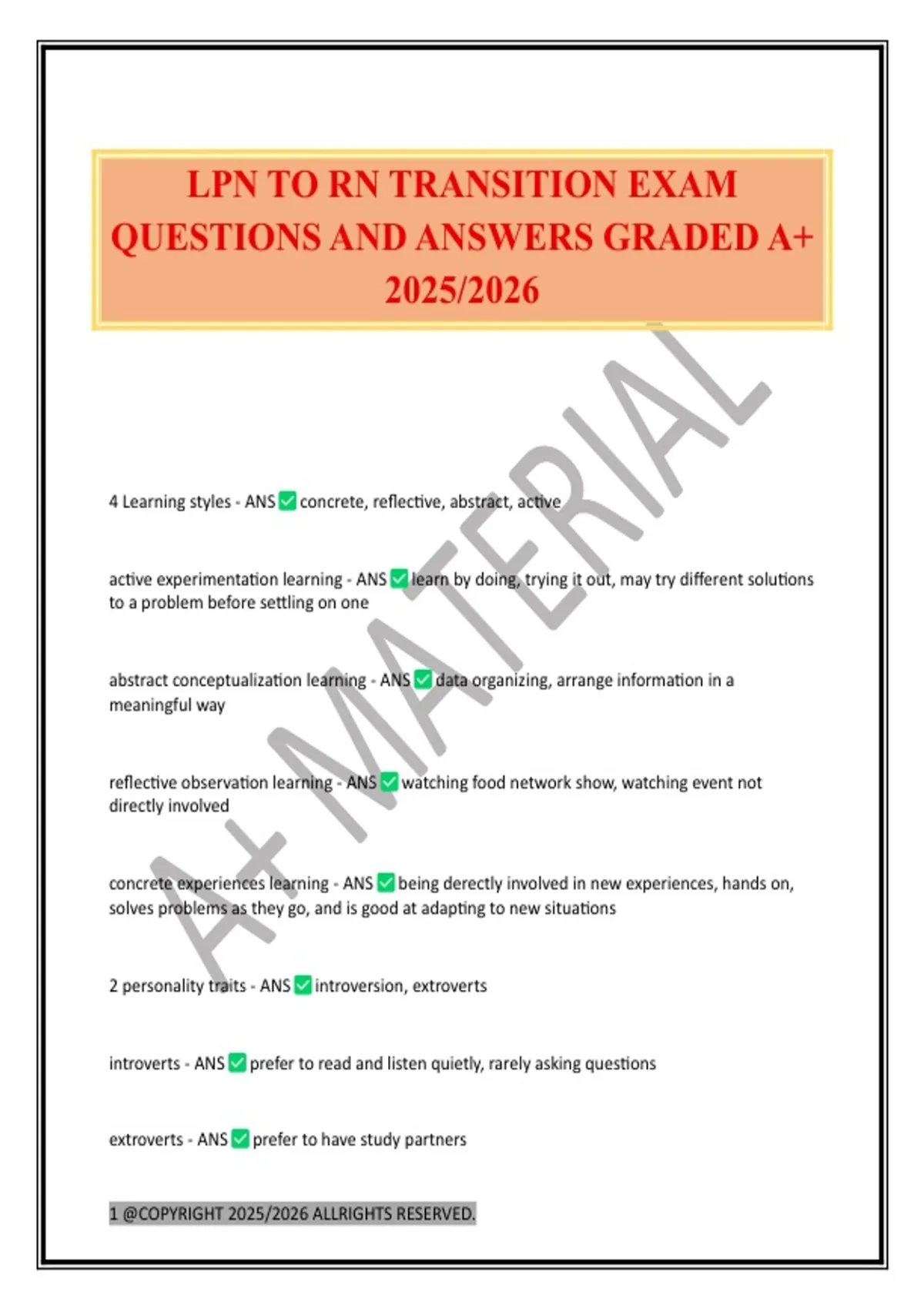 LPN TO RN TRANSITION EXAM QUESTIONS AND ANSWERS GRADED A+ 2025/2026