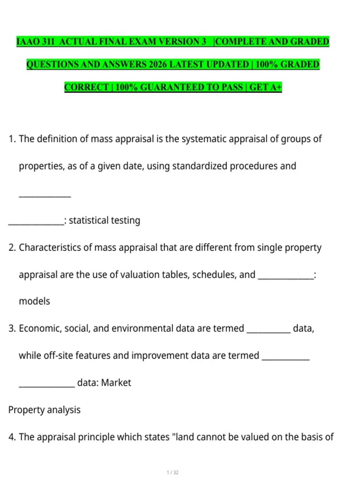 CORRECT | 100% GUARANTEED TO PASS | GET A+